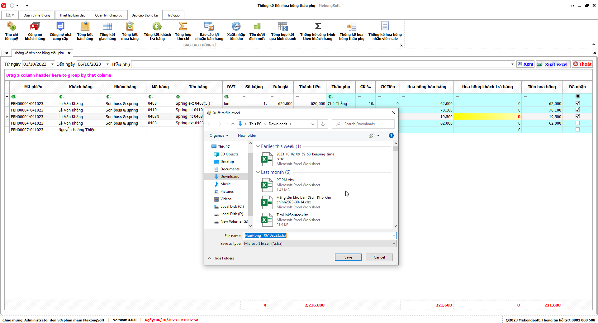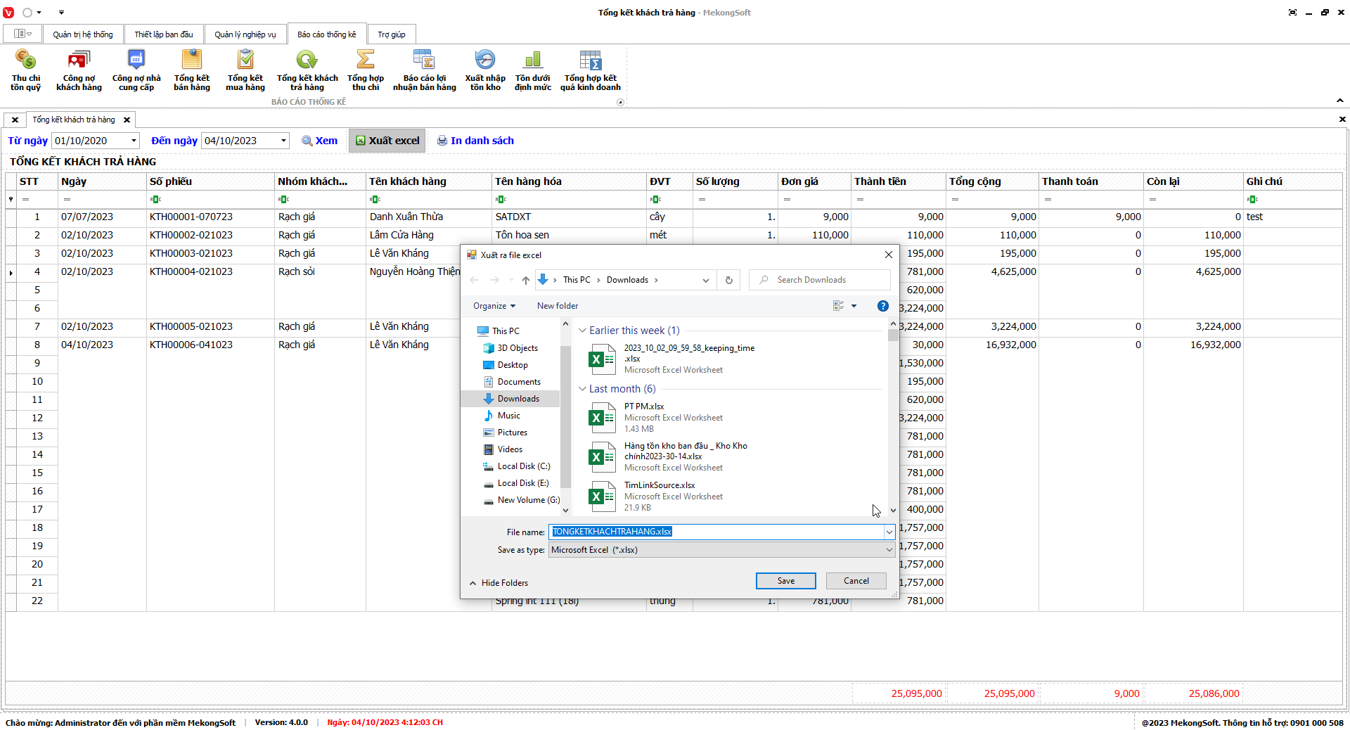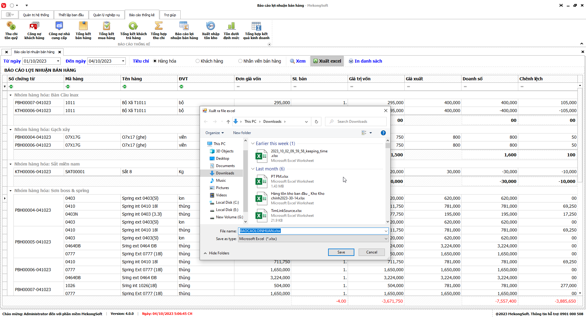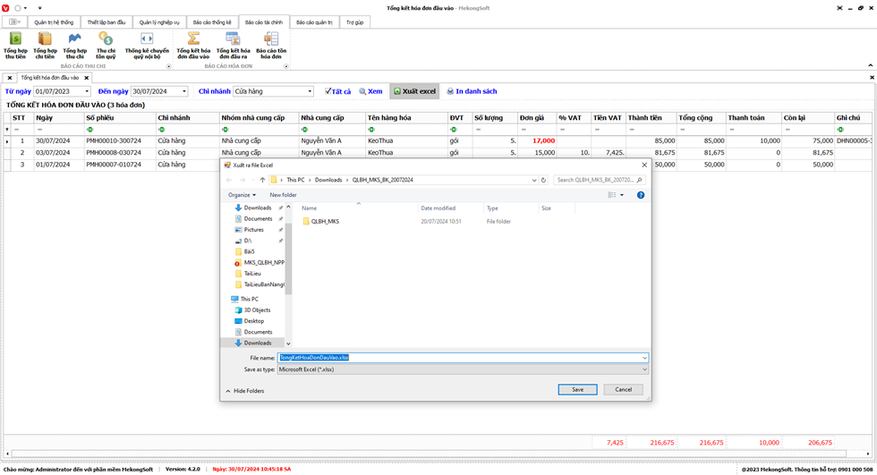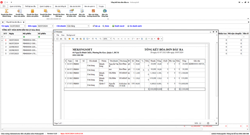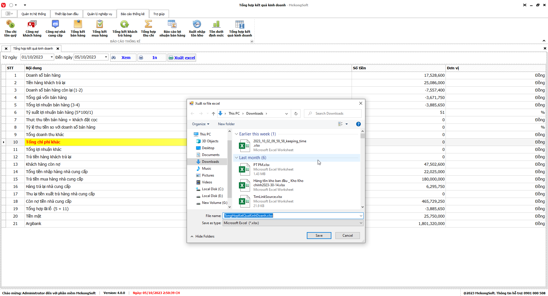 Phần mềm sẽ xuất báo cáo tổng hợp kết quả kinh doanh dưới dạng file excel.
