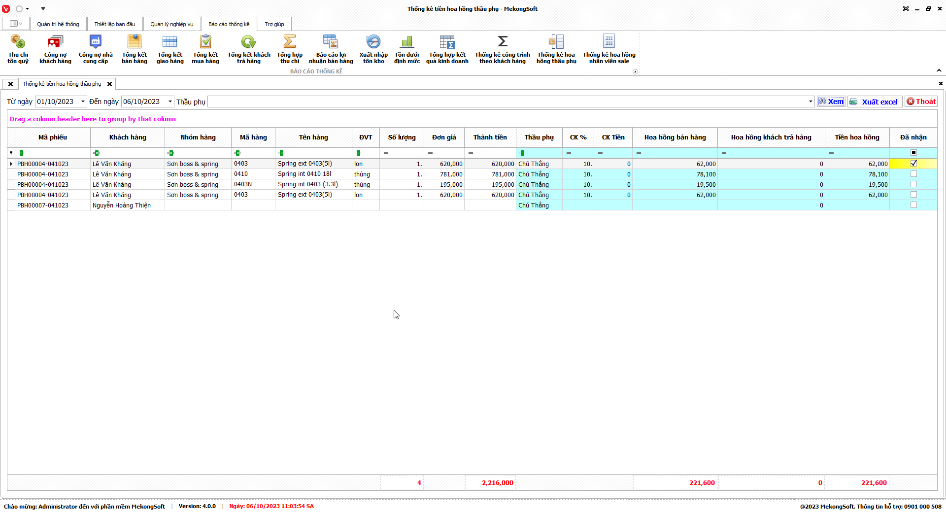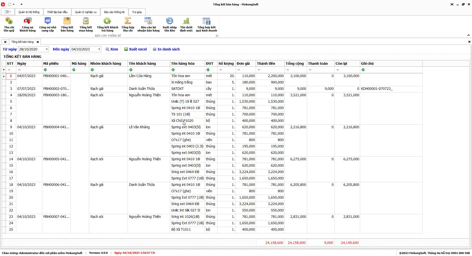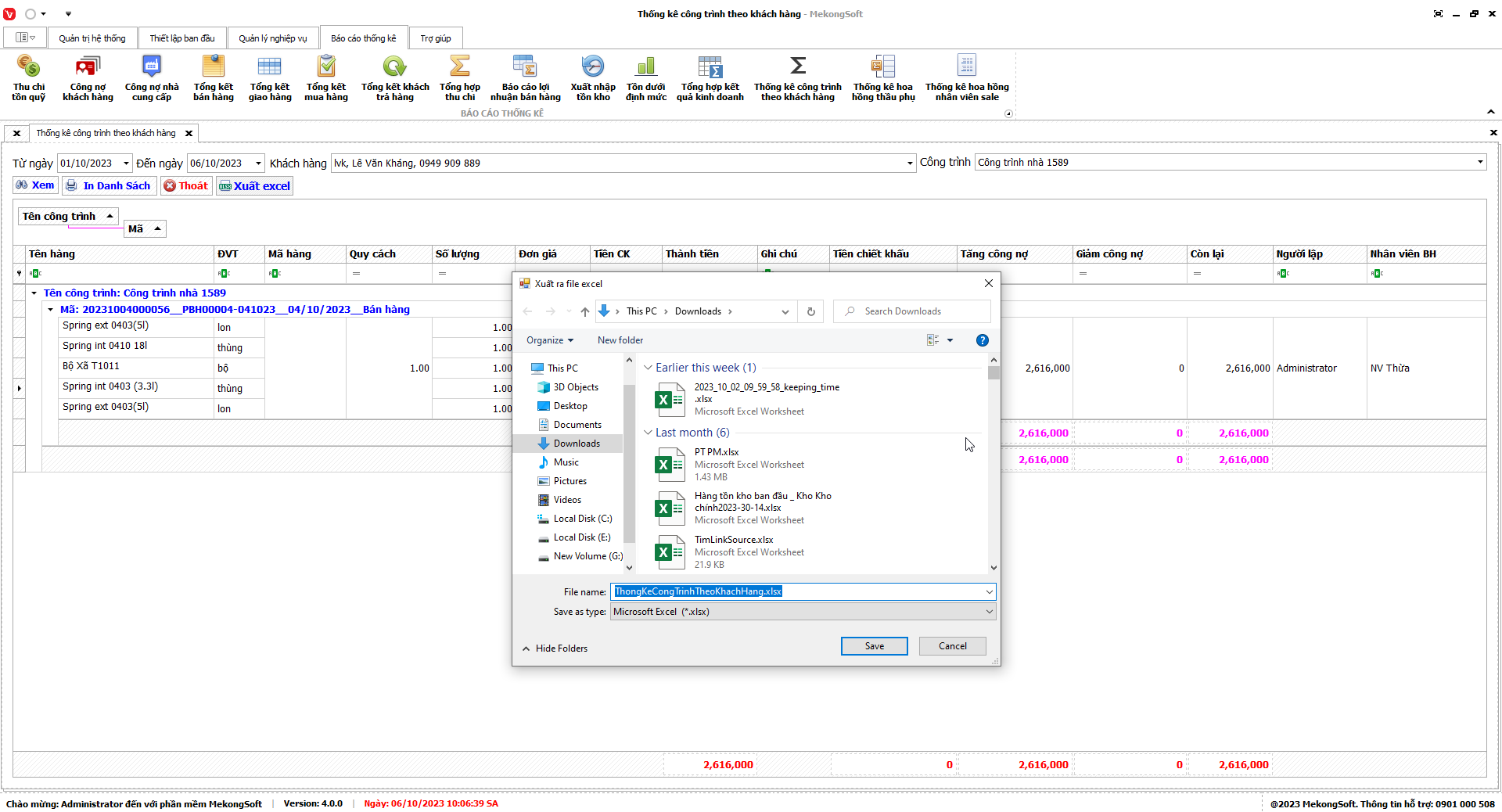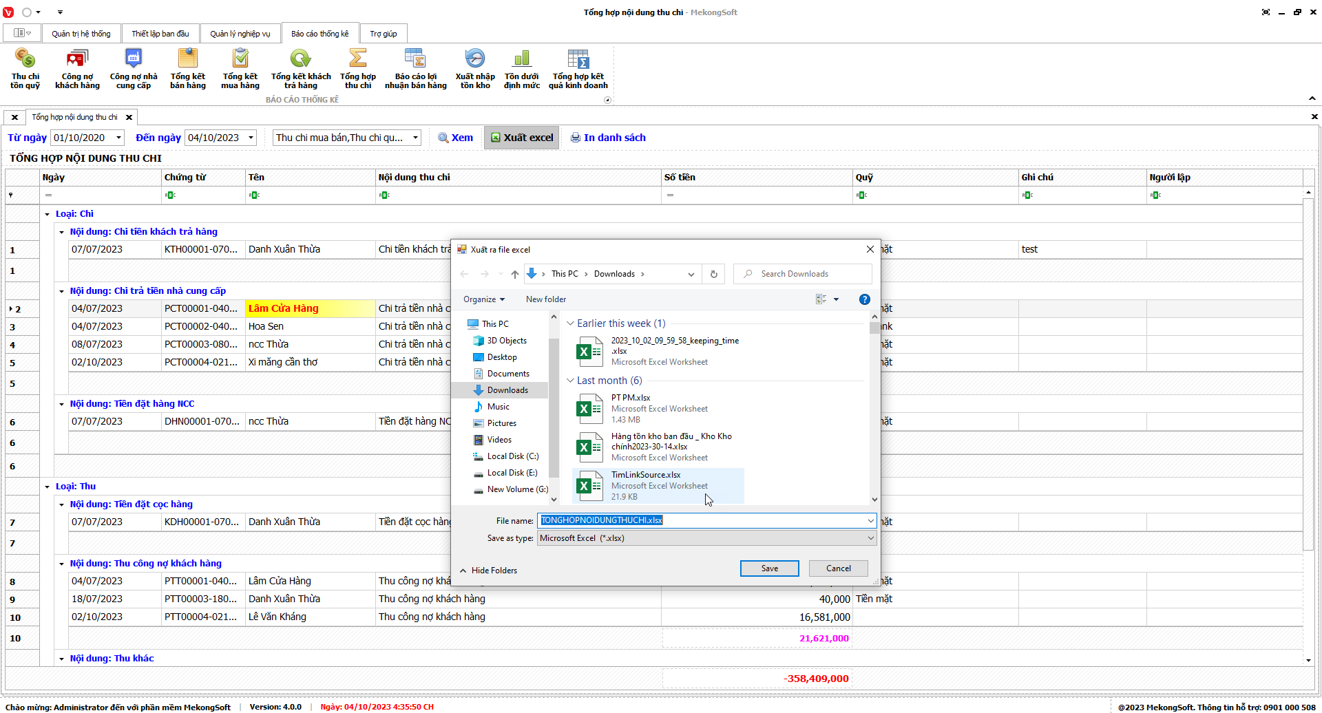 Phần mềm sẽ xuất báo cáo tổng hợp kết quả kinh doanh dưới dạng file excel.