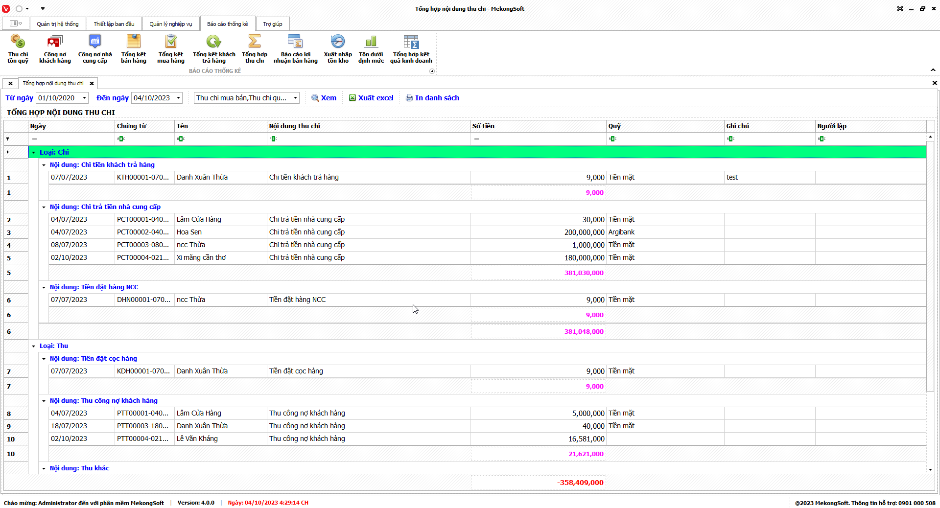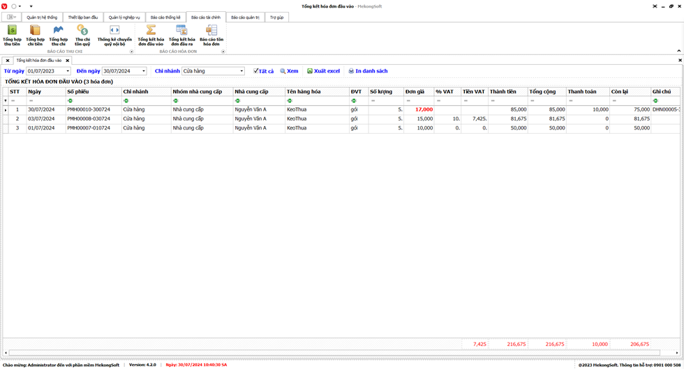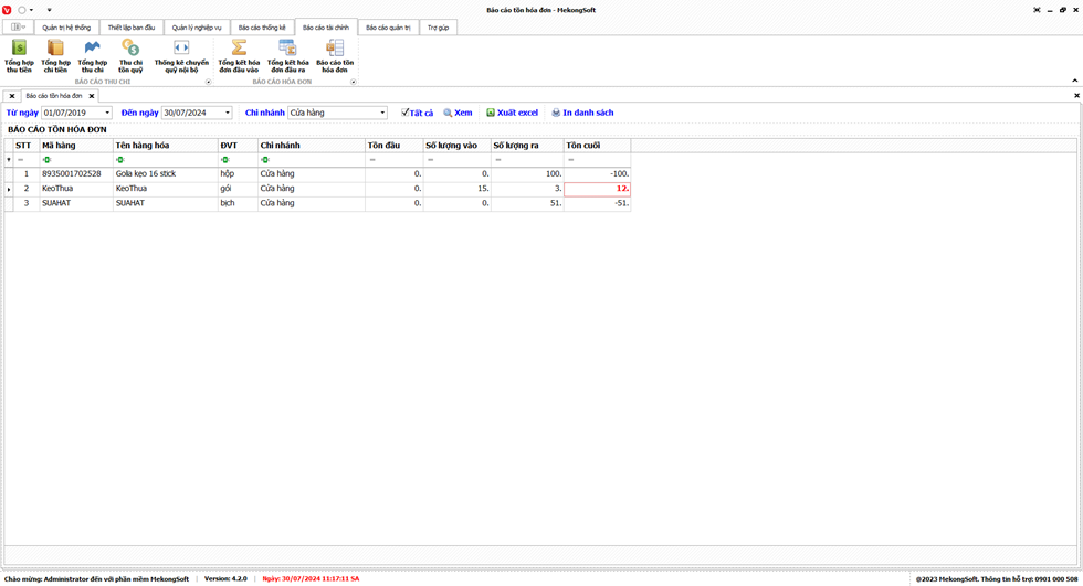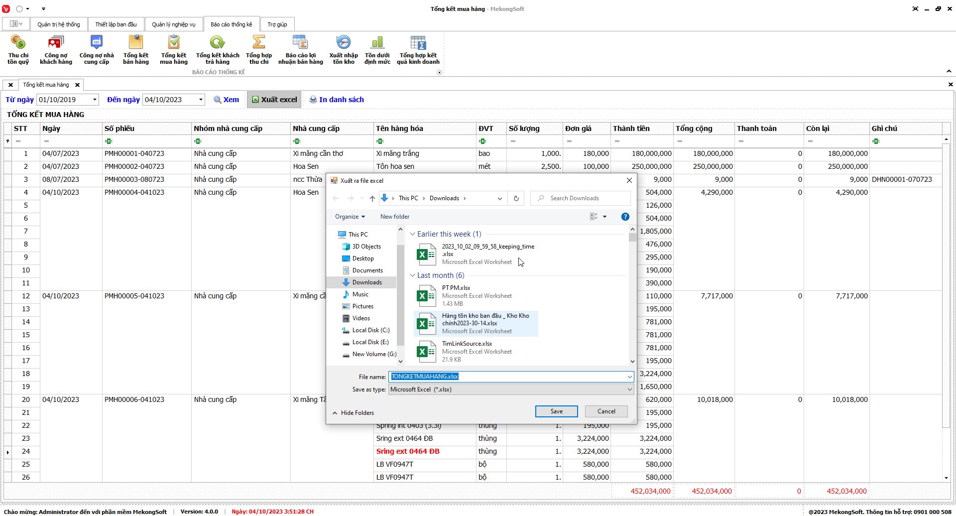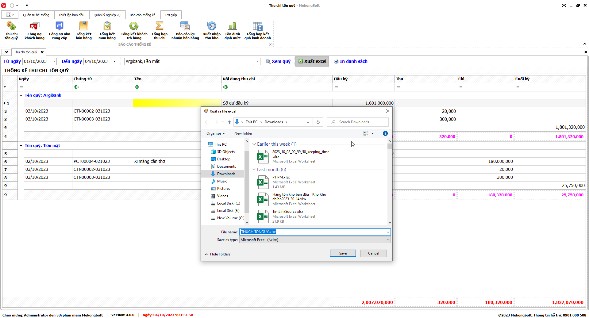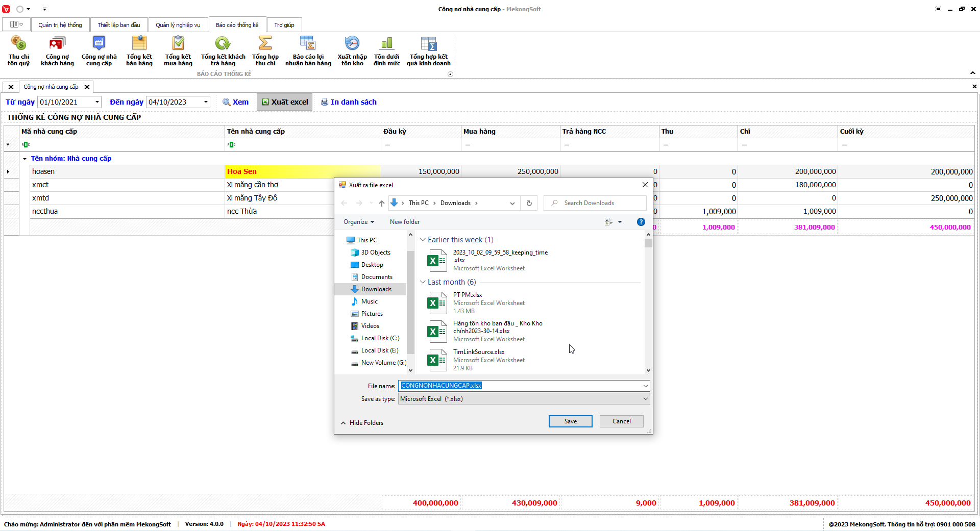 Phần mềm sẽ xuất báo cáo tổng hợp kết quả kinh doanh dưới dạng file excel.