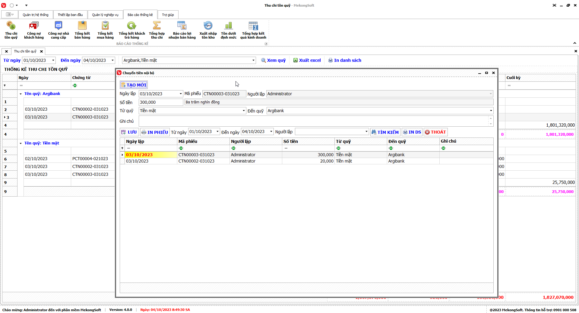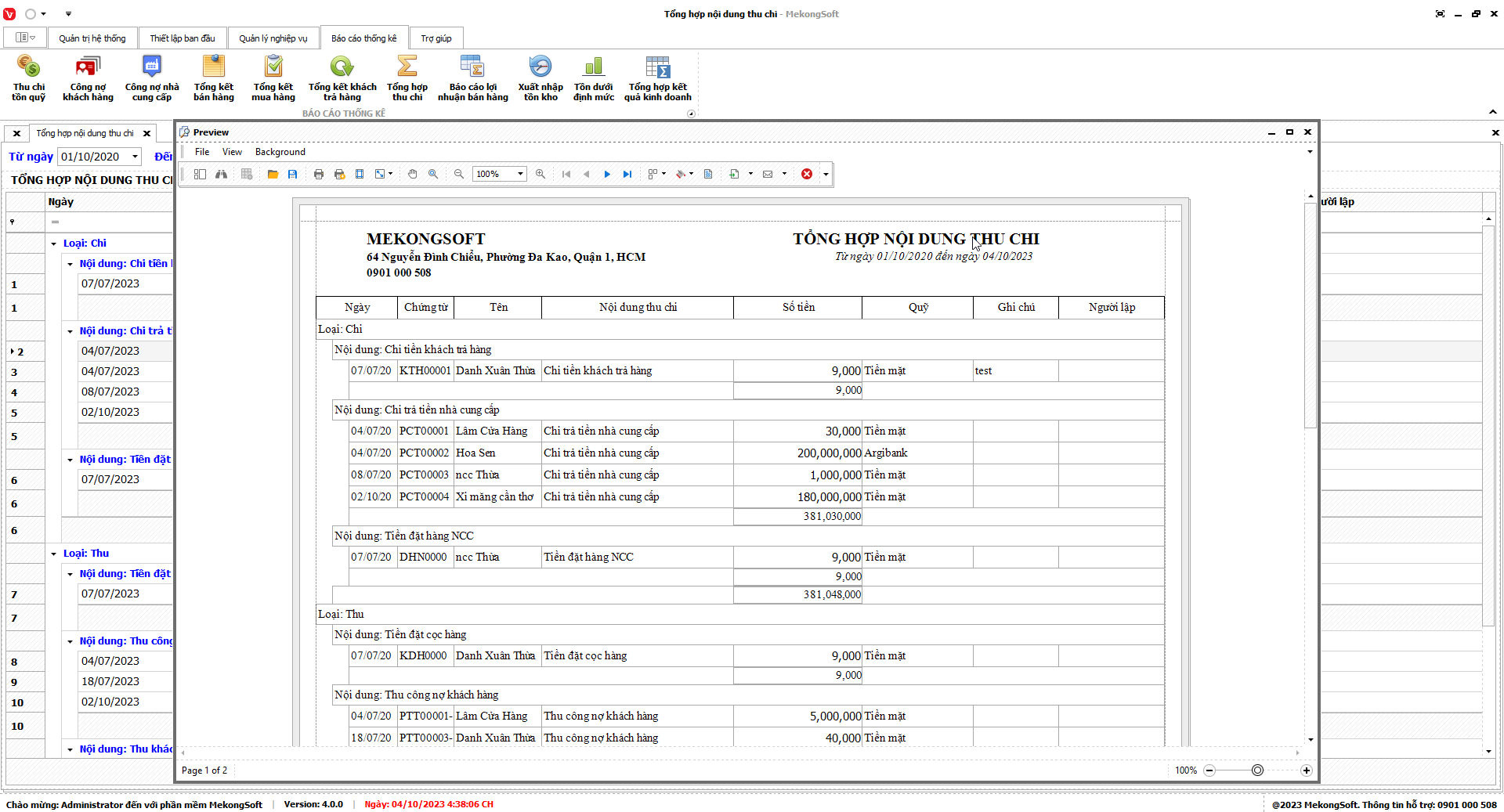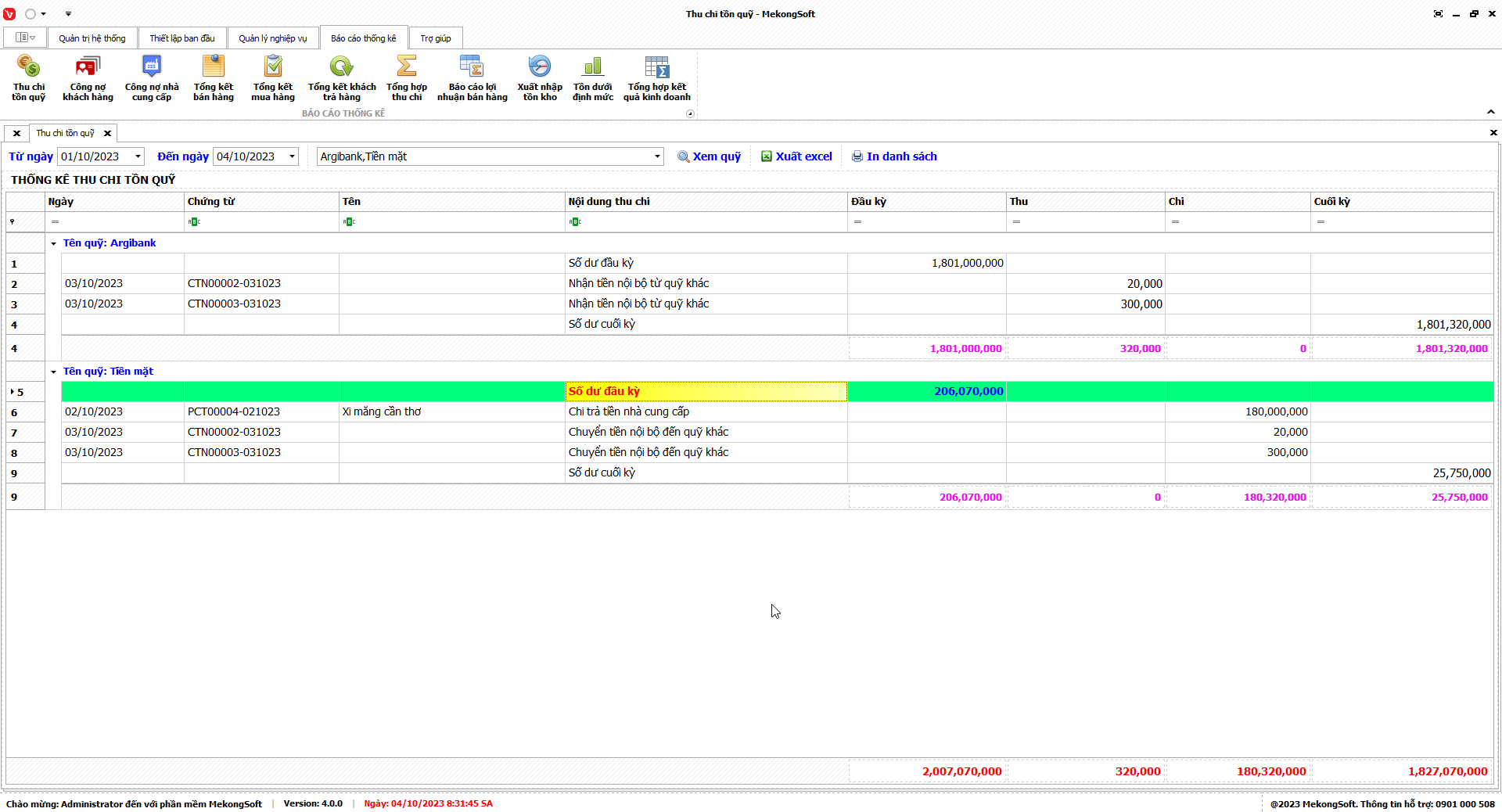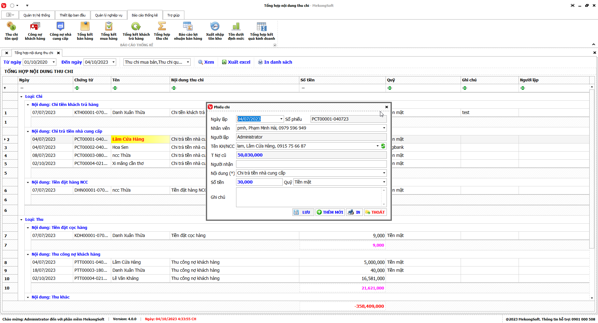 Phần mềm sẽ xuất báo cáo tổng hợp kết quả kinh doanh dưới dạng file excel.