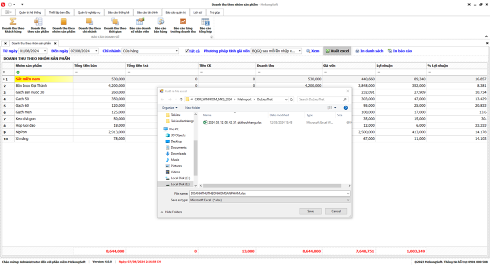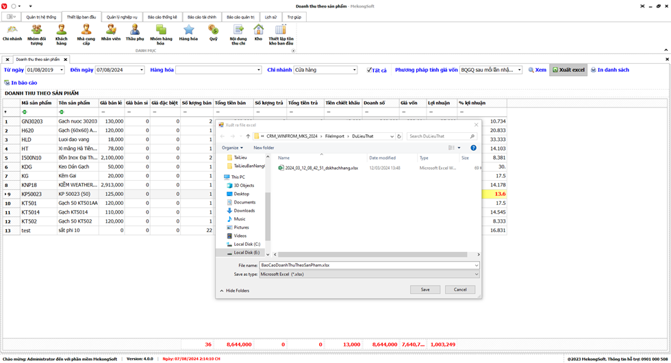 Để xuất excel Báo cáo bán hàng trên phần mềm quản lý bán hàng vật liệu xây dựng, bạn có thể thực hiện theo các bước sau:
