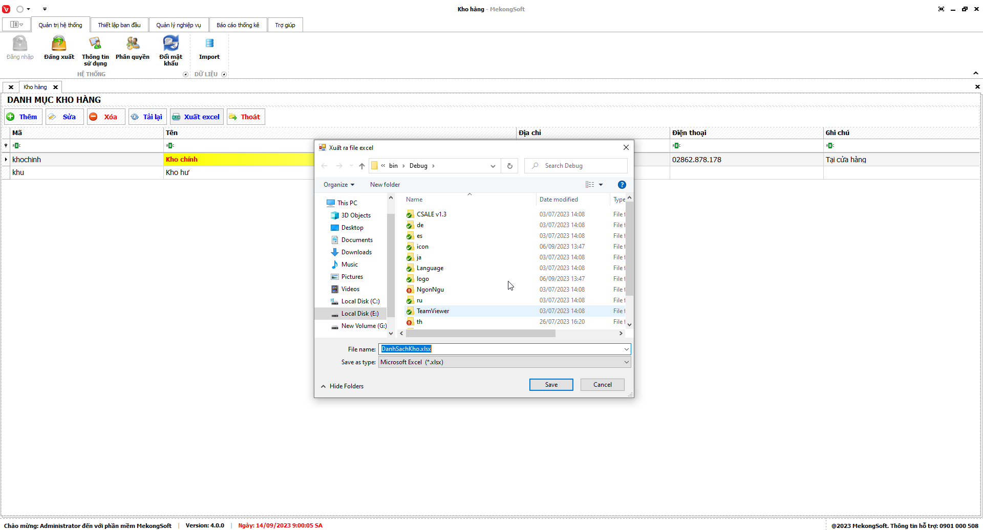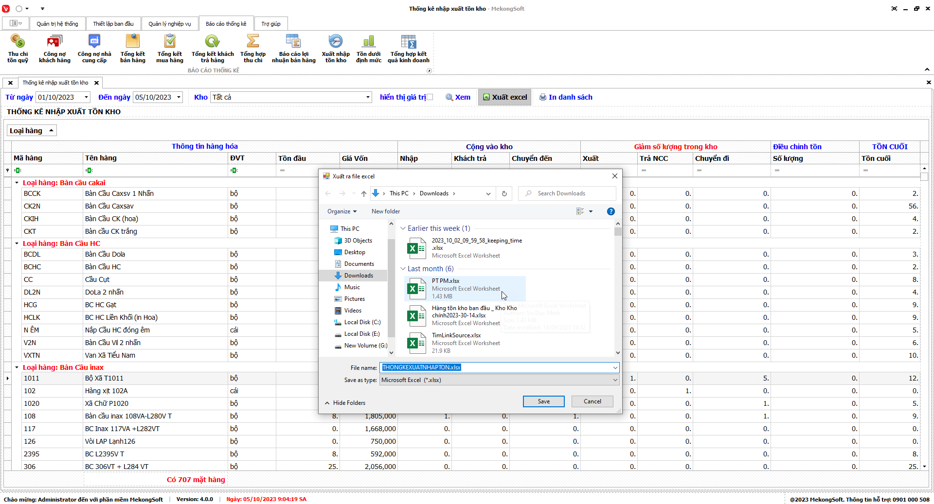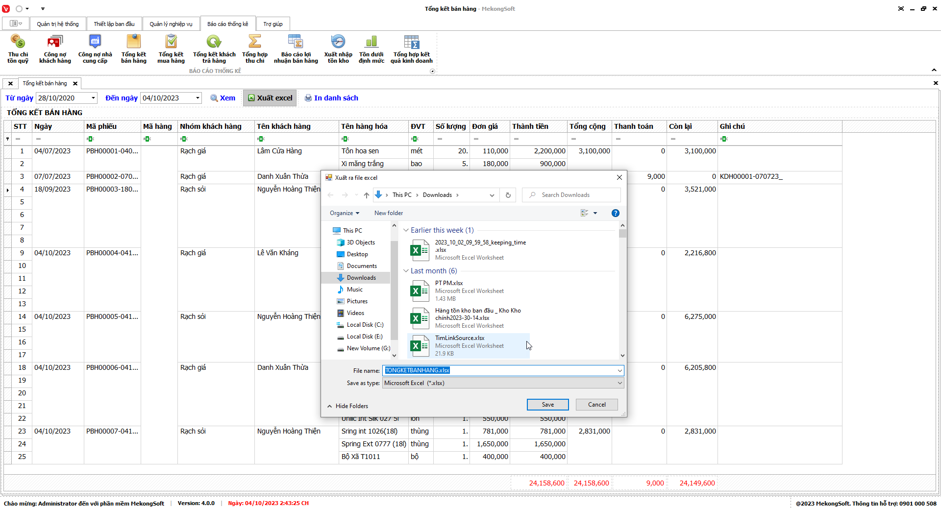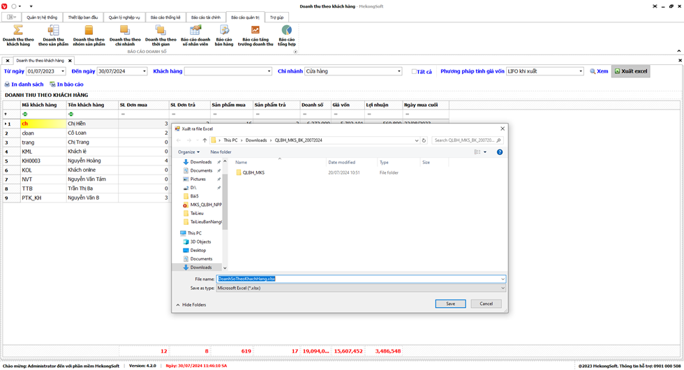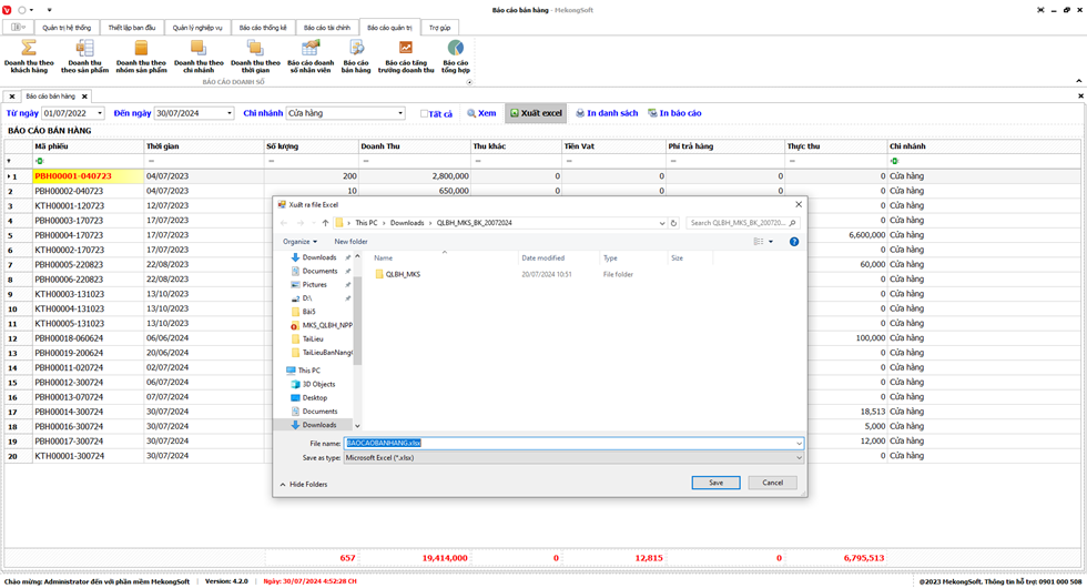 Phần mềm sẽ xuất Báo cáo bán hàng dưới dạng file excel.