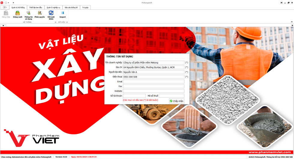 Để thiết lập thông tin sử dụng trên phần mềm bán hàng vật liệu xây dựng, bạn có thể thực hiện theo các bước sau: