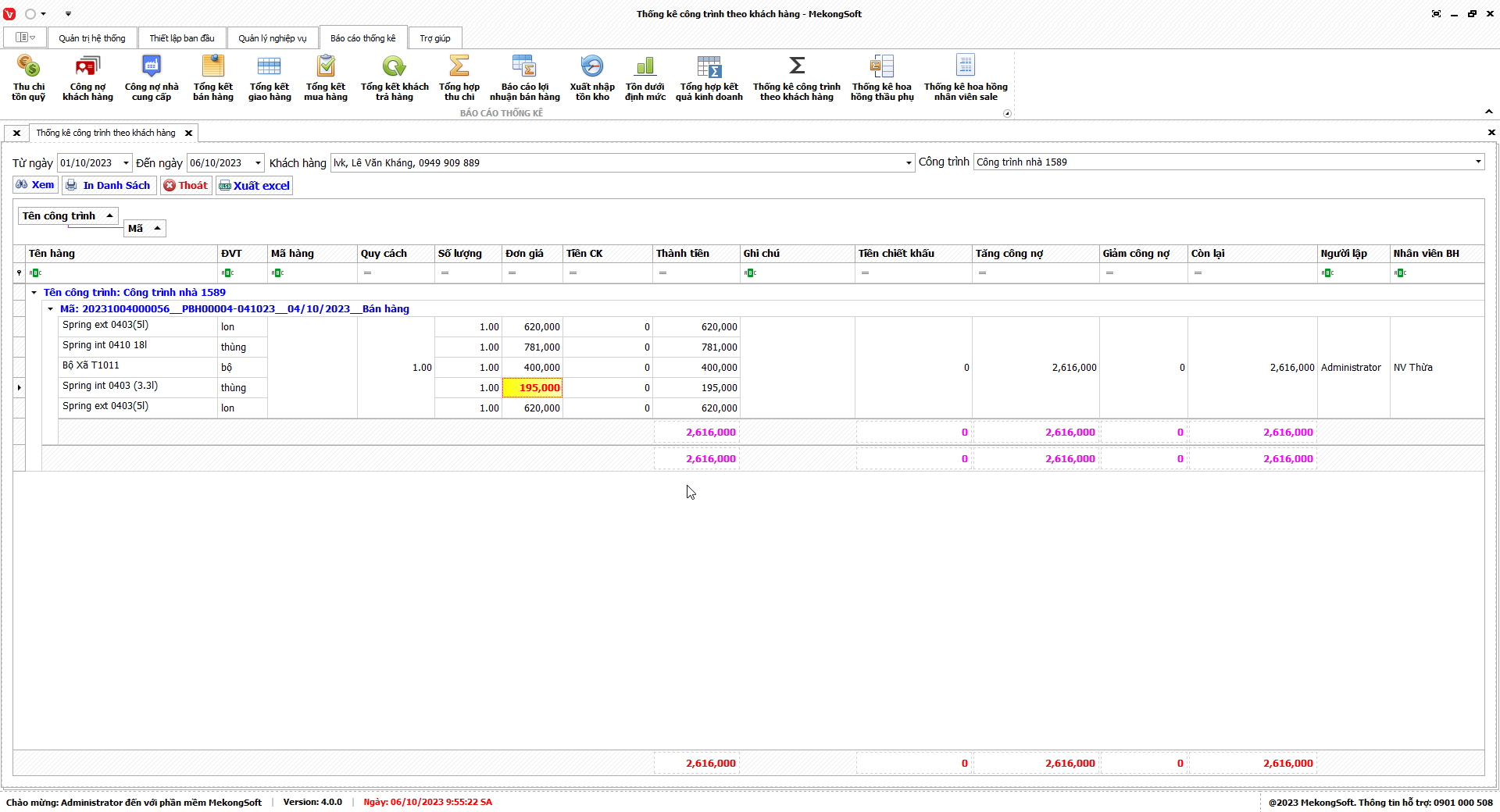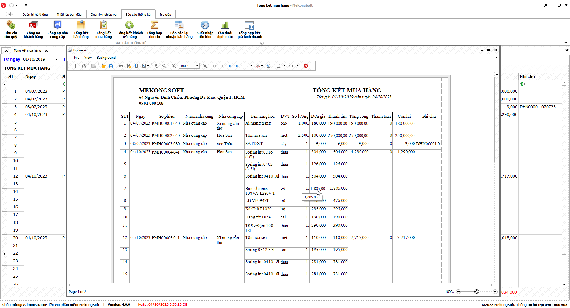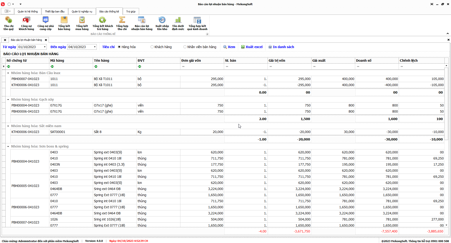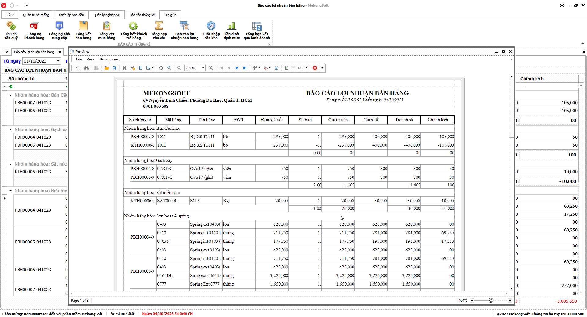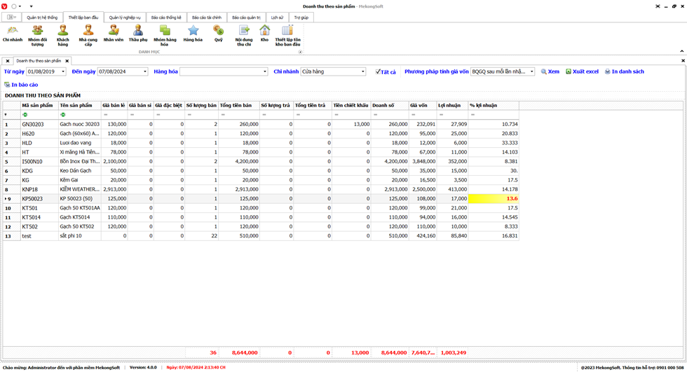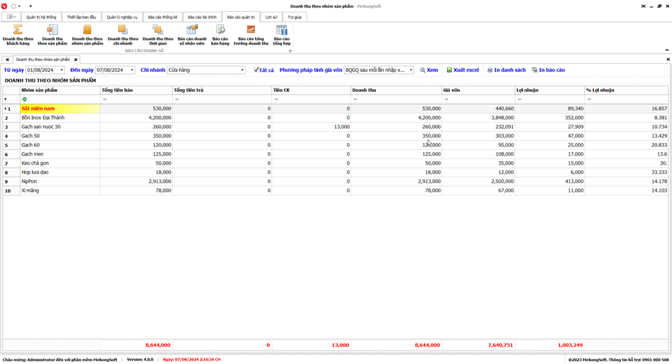 Chức năng tổng hợp kết quả kinh doanh là một tính năng quan trọng của phần mềm quản lý bán hàng vật liệu xây dựng, giúp doanh nghiệp theo dõi và đánh giá tình hình kinh doanh một cách tổng quan.