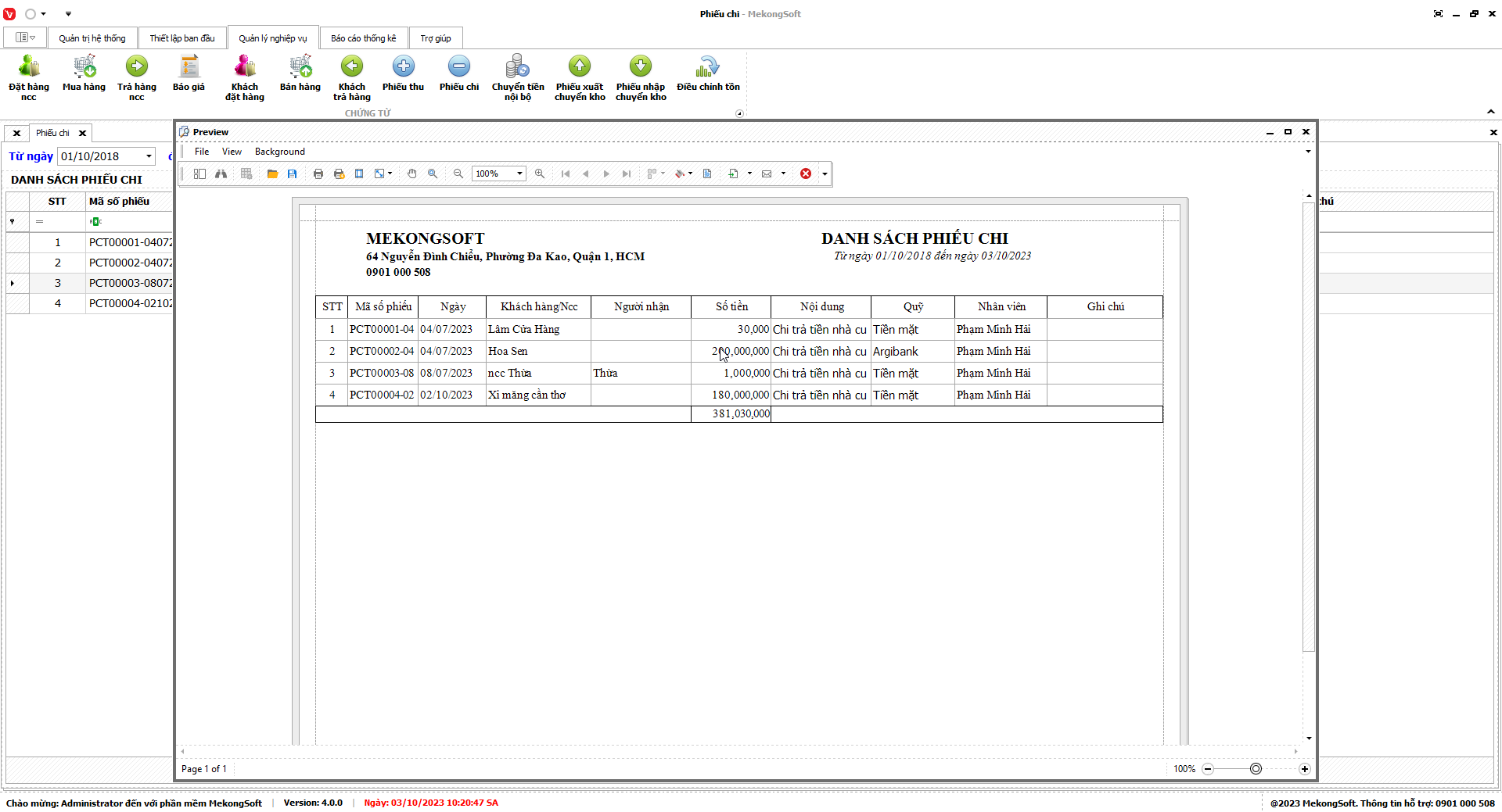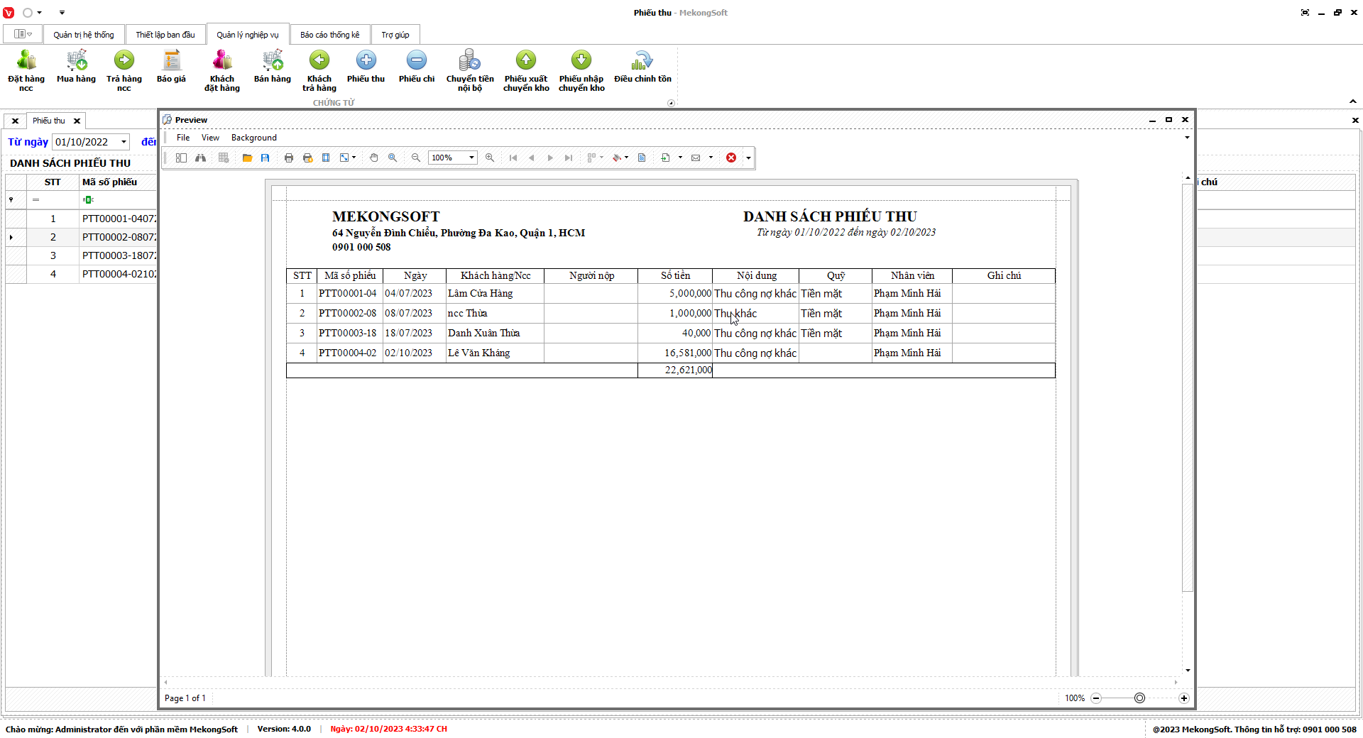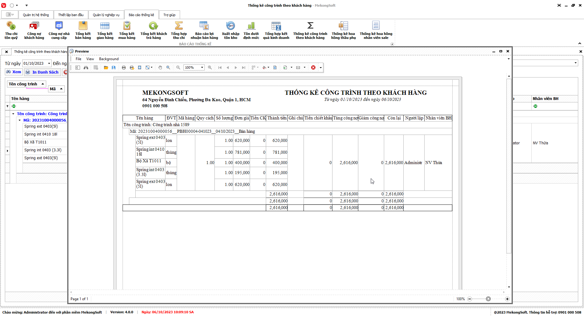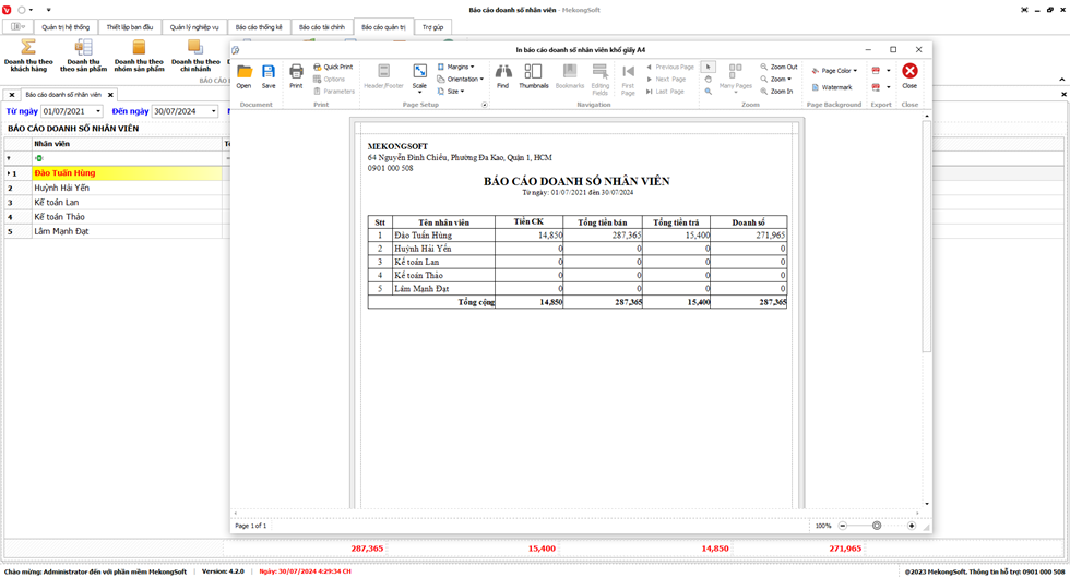 Để in Doanh số theo nhân viên trên phần mềm quản lý bán hàng vật liệu xây dựng, bạn có thể thực hiện theo các bước sau: