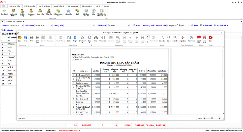 Để in Doanh thu theo thời gian trên phần mềm quản lý bán hàng vật liệu xây dựng, bạn có thể thực hiện theo các bước sau: