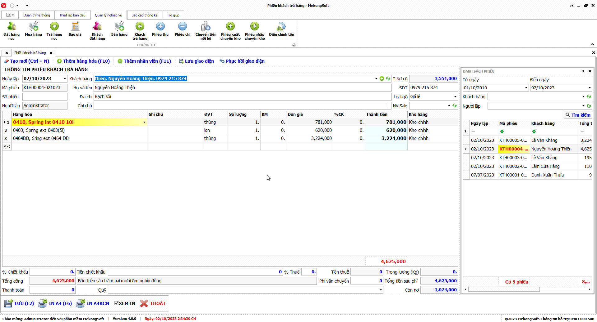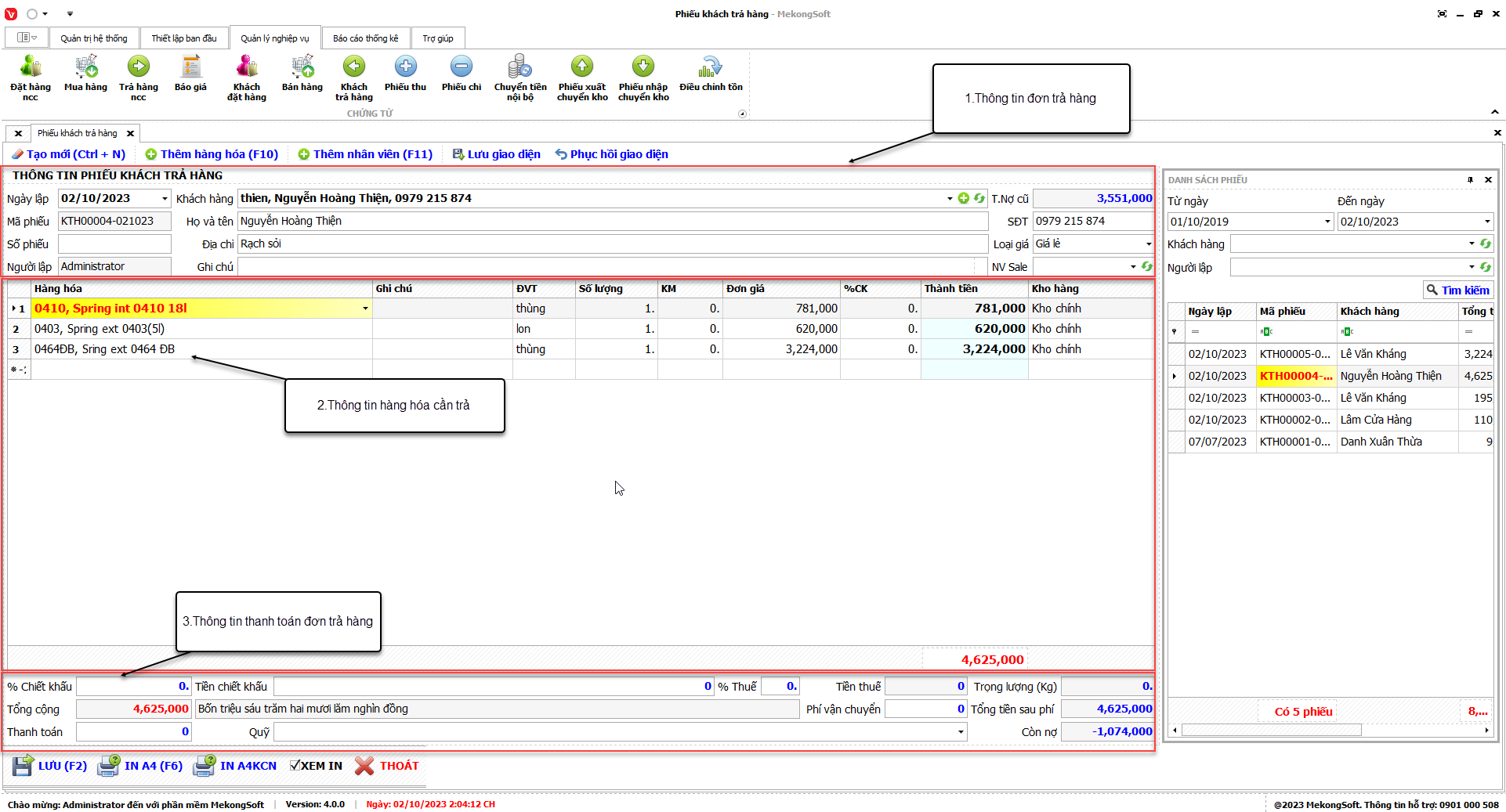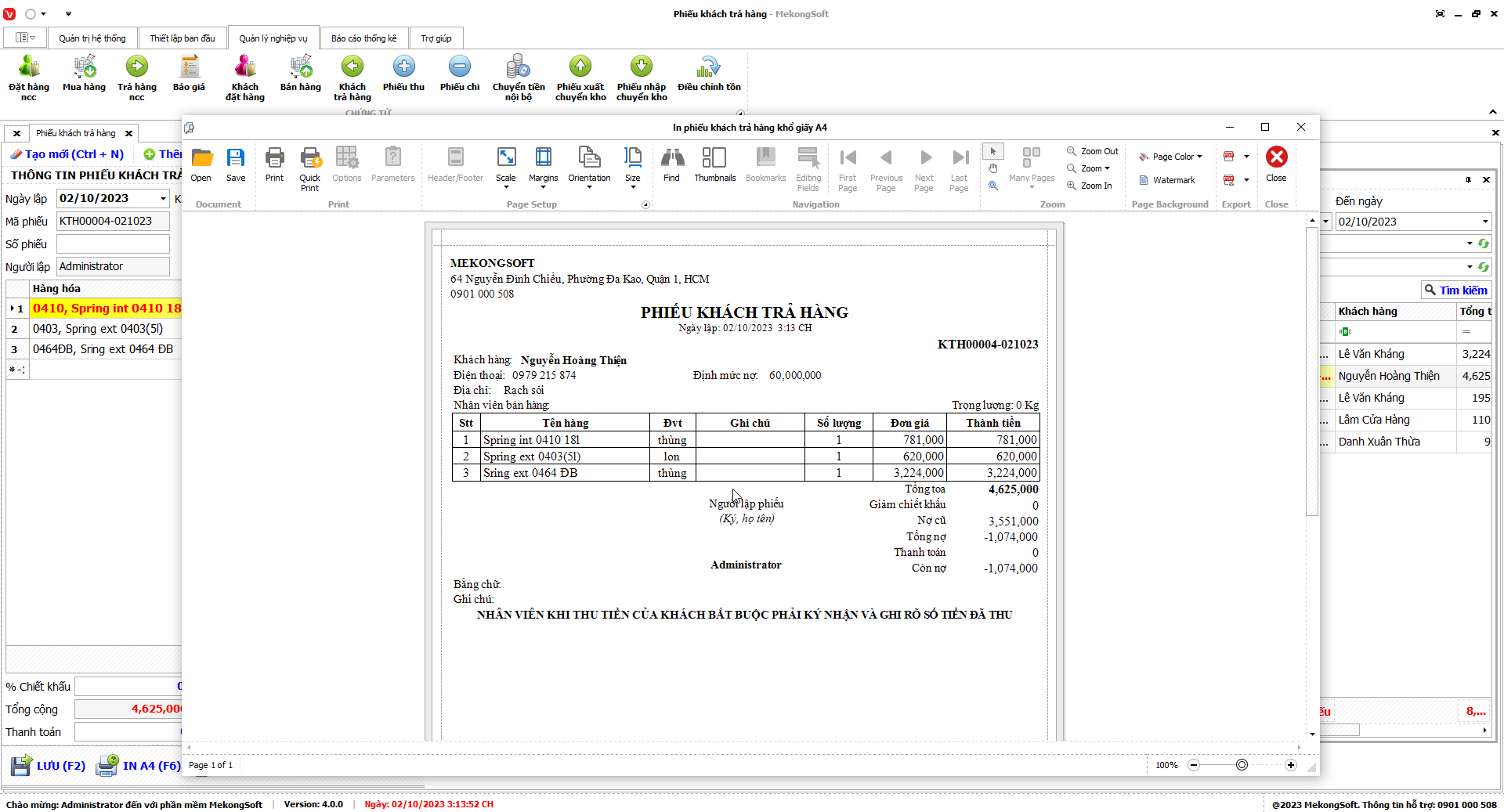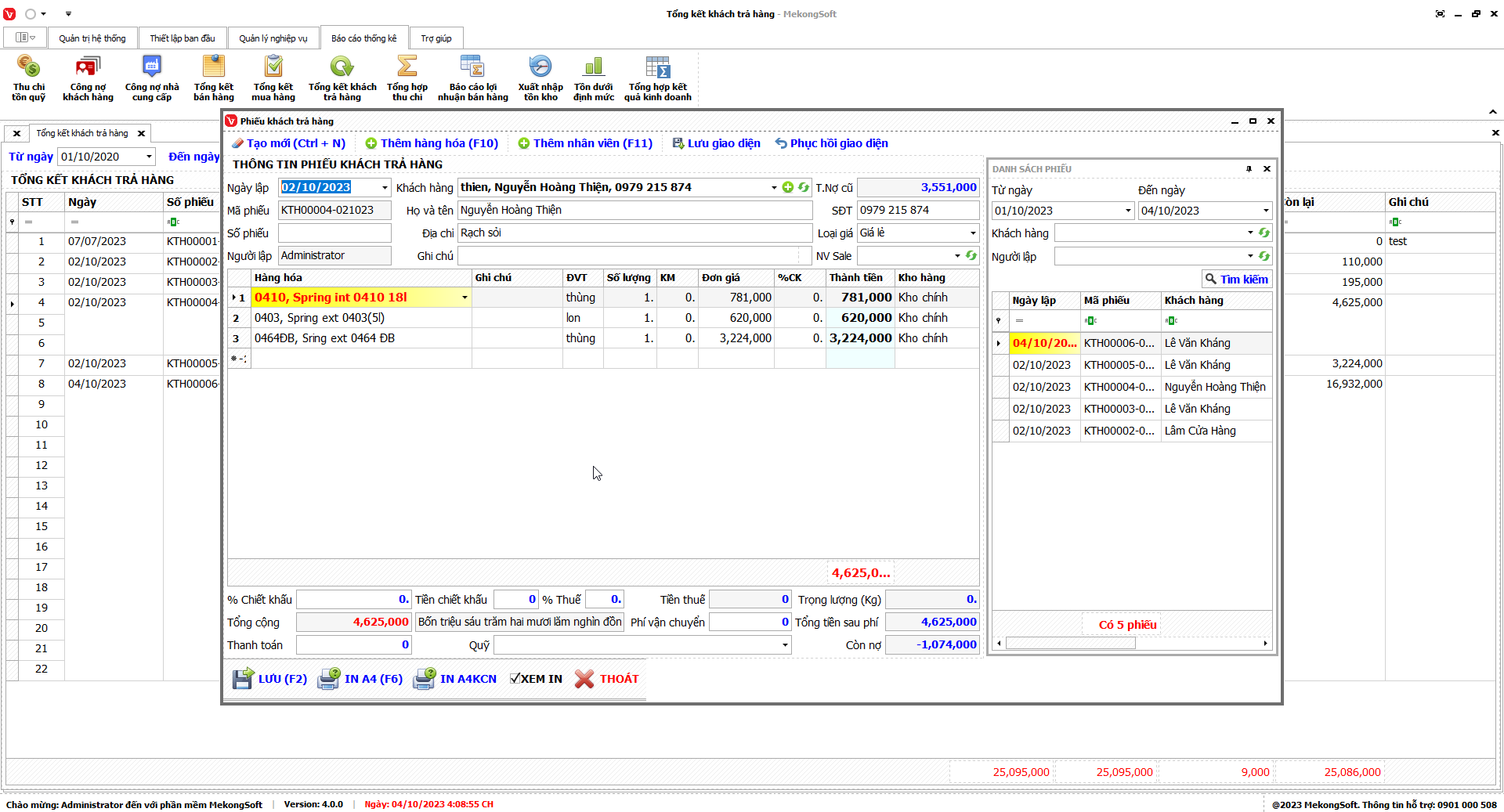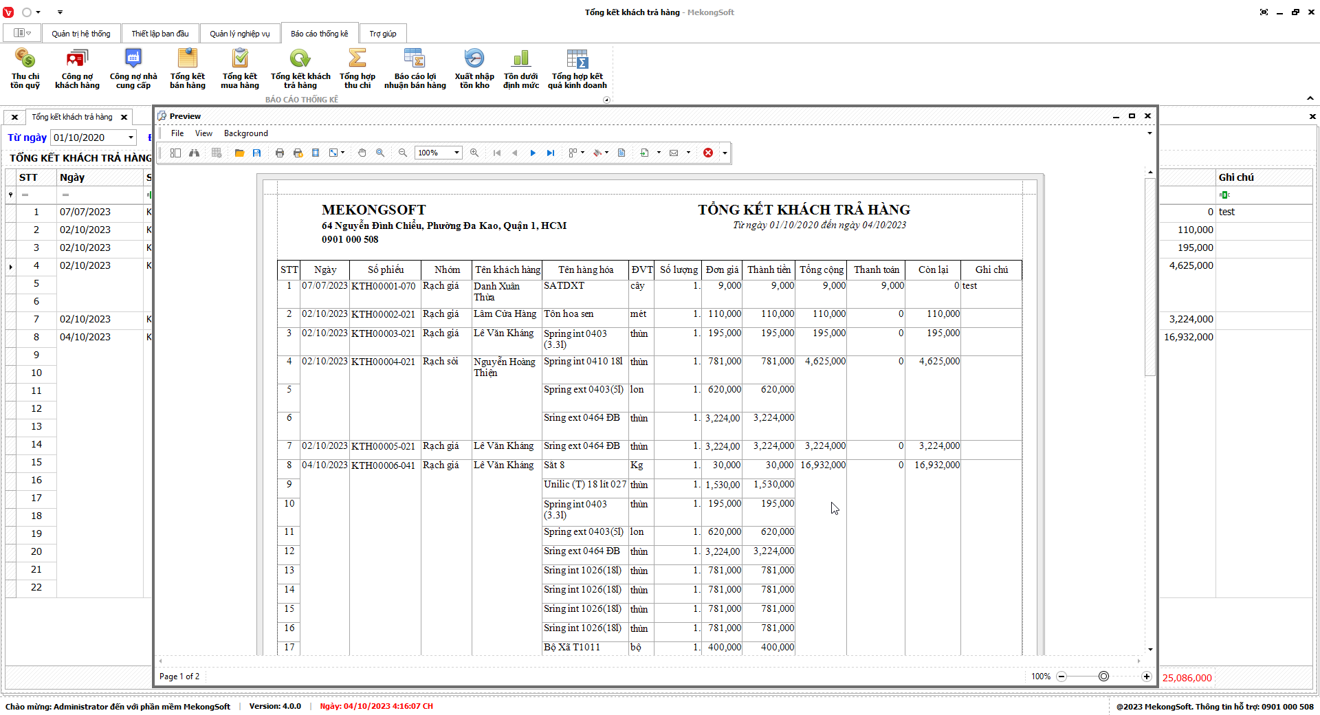 7.6. Tổng kết khách trả hàng