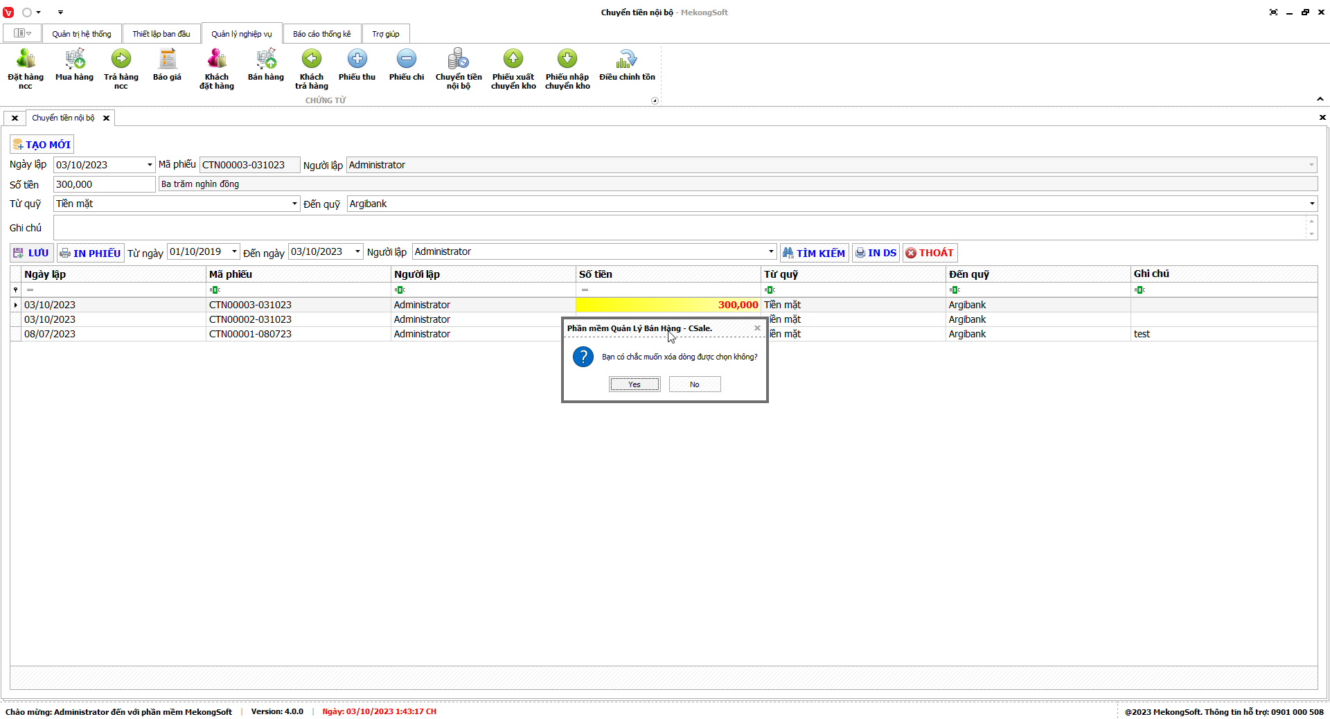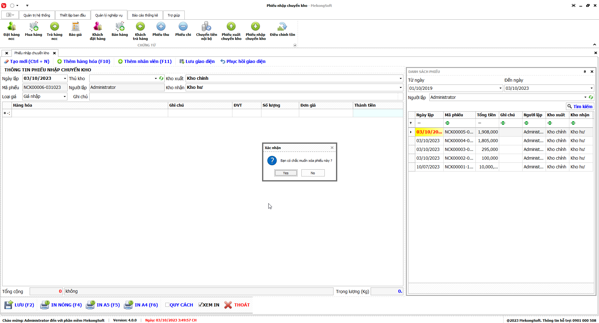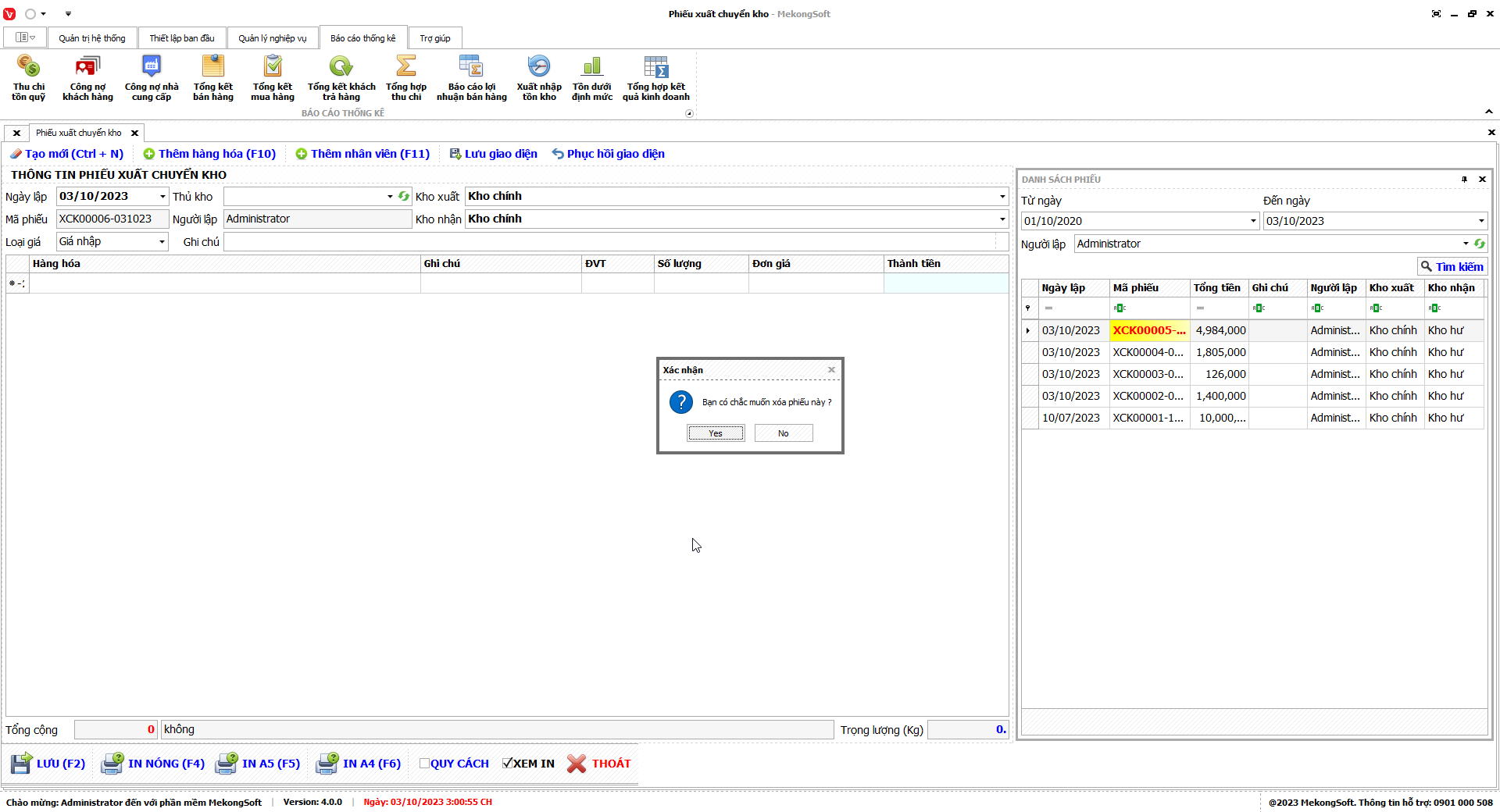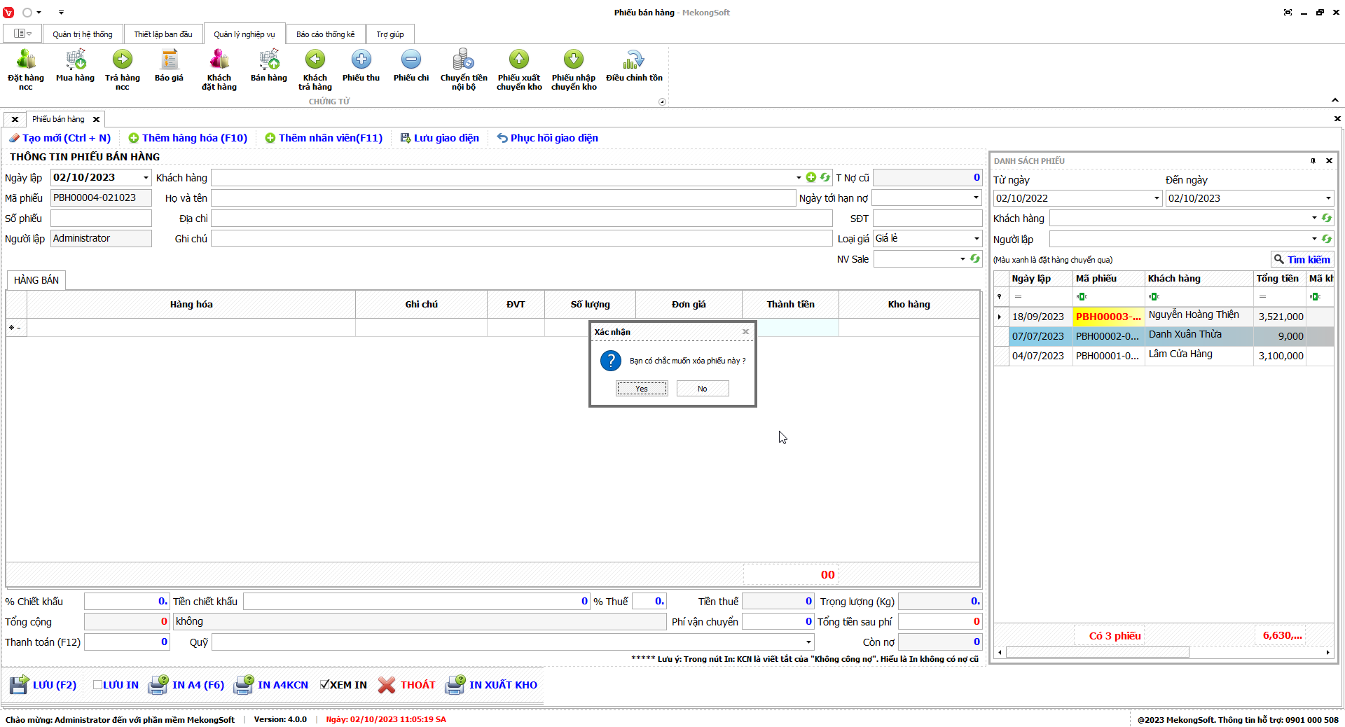 Phần mềm sẽ hiển thị thông báo xác nhận.