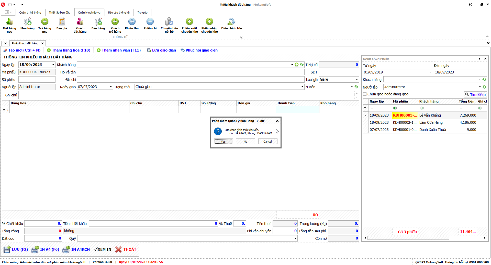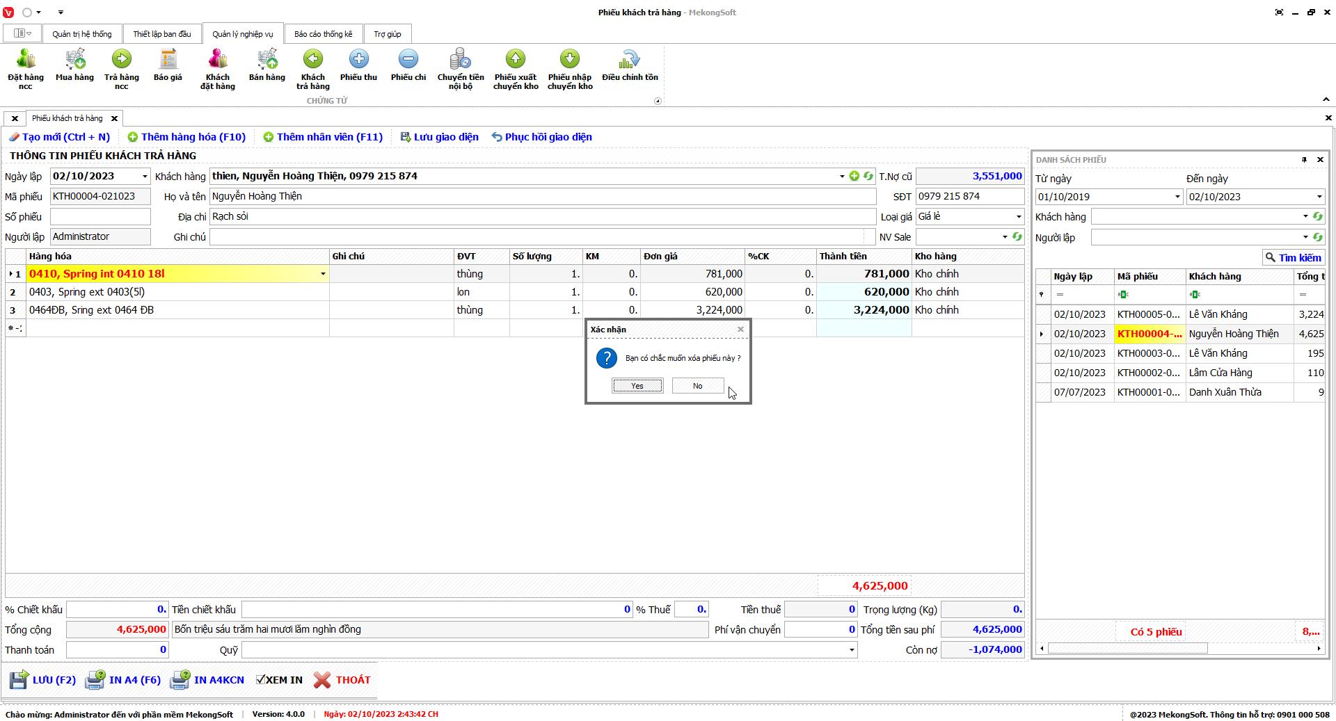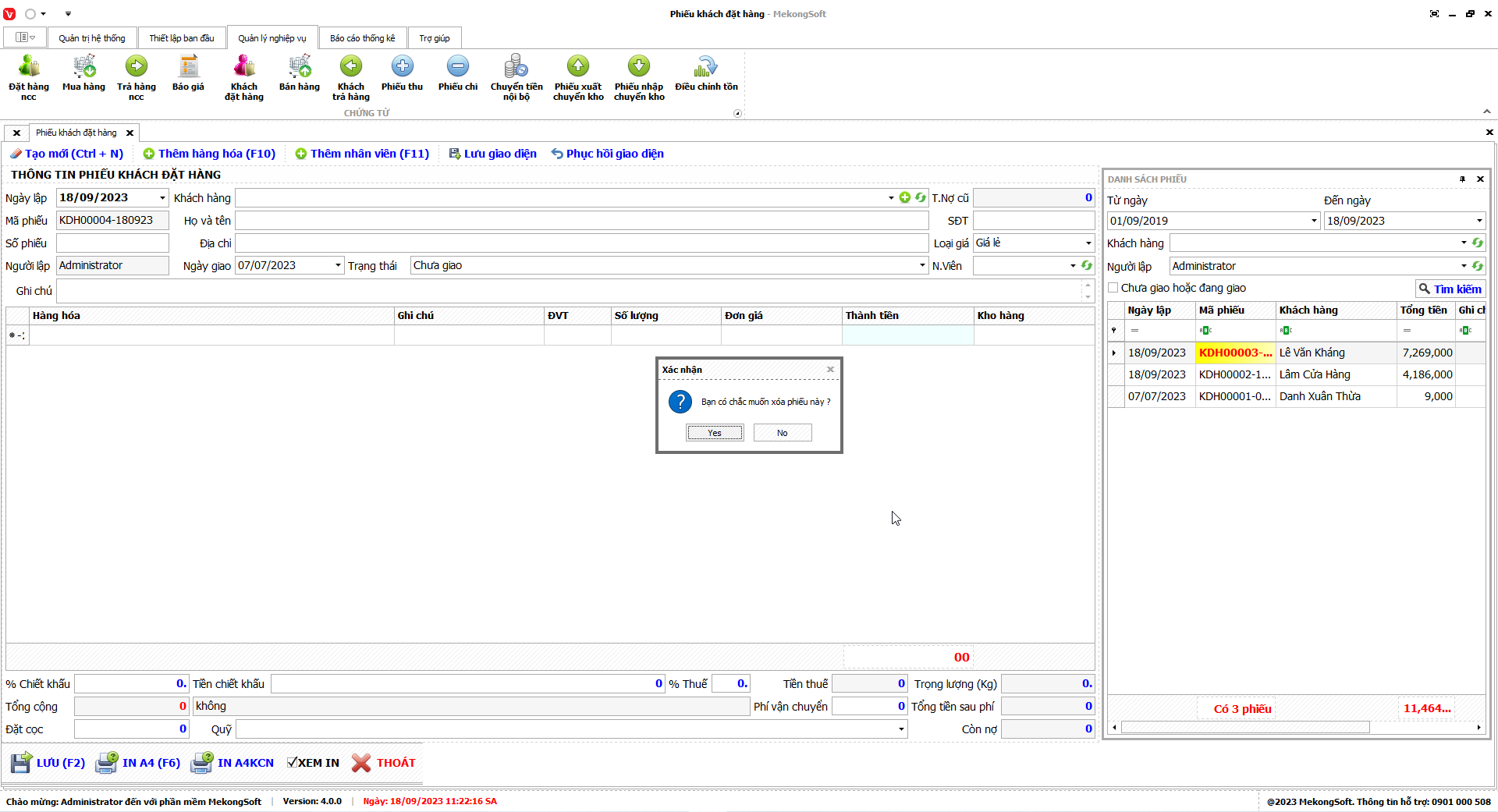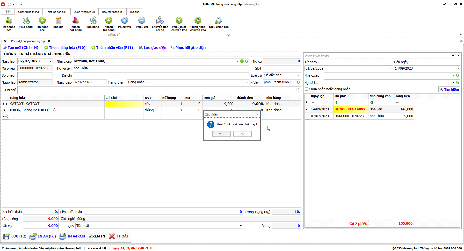 Phần mềm sẽ hiển thị thông báo xác nhận.