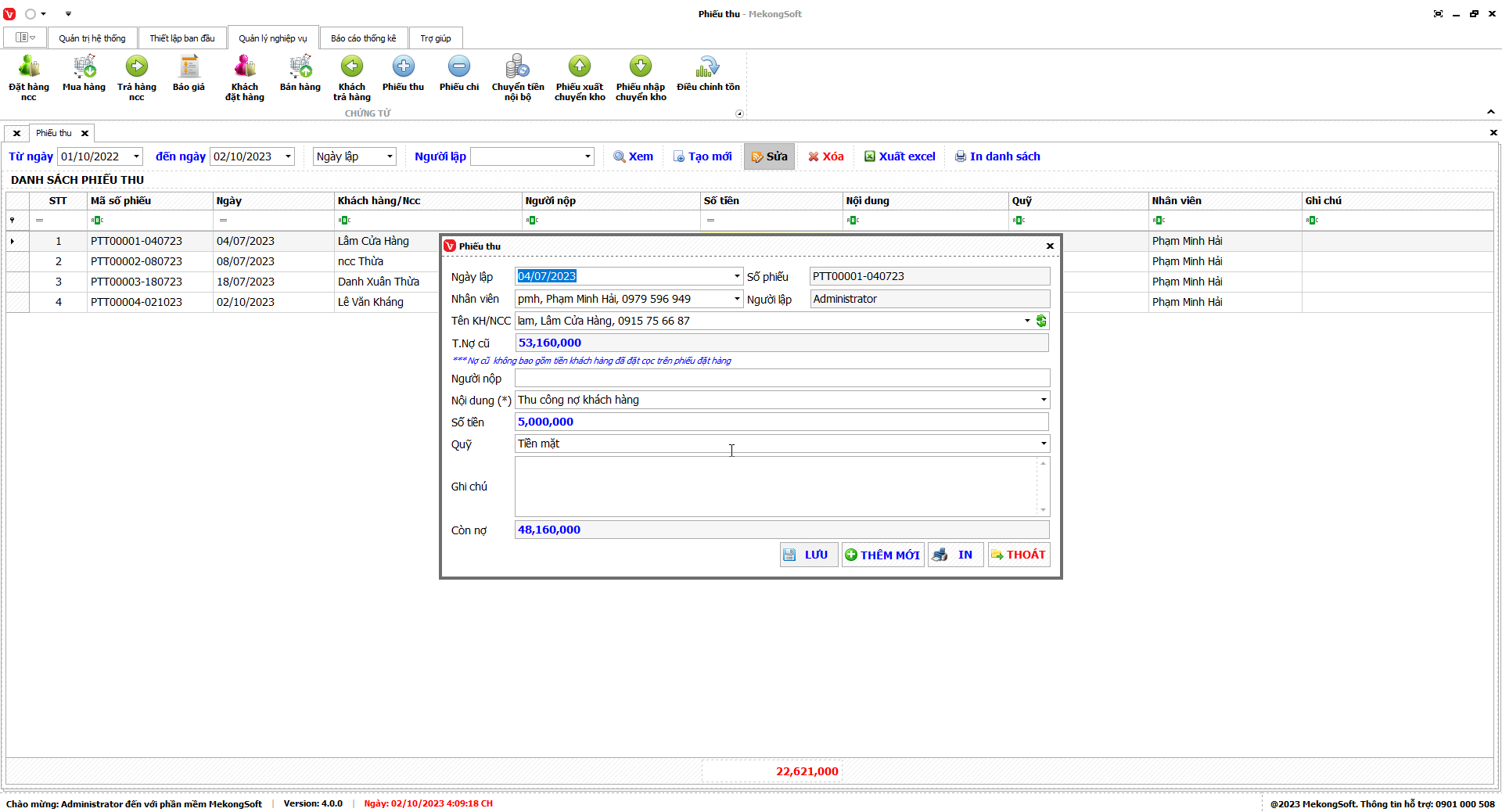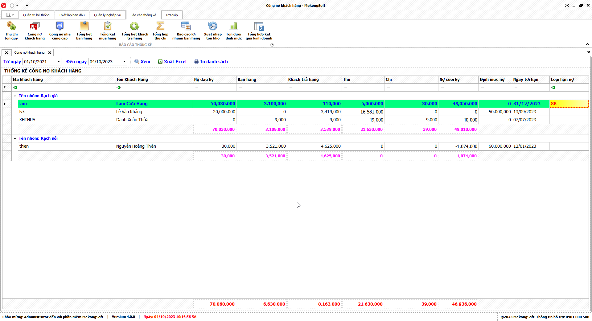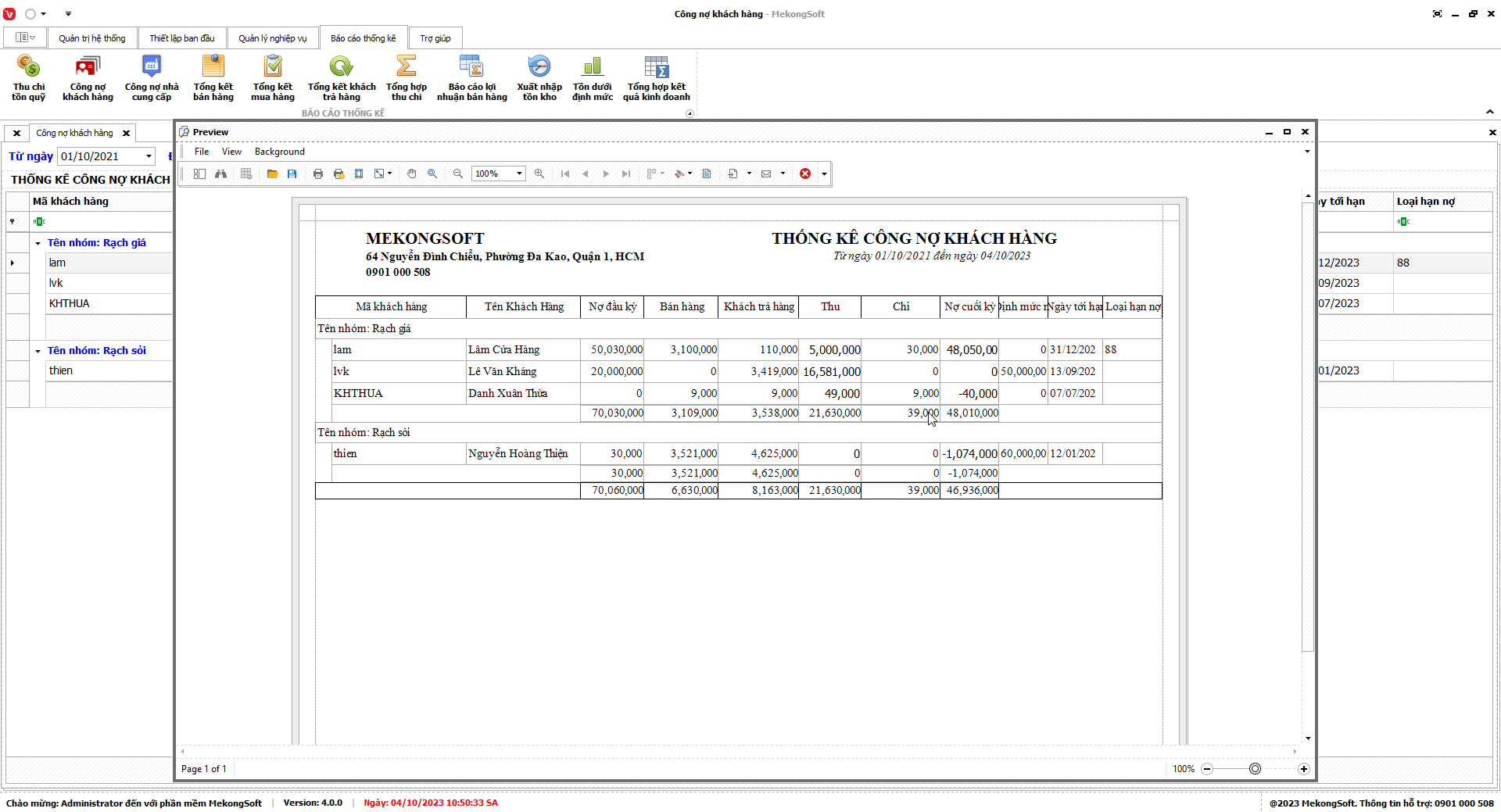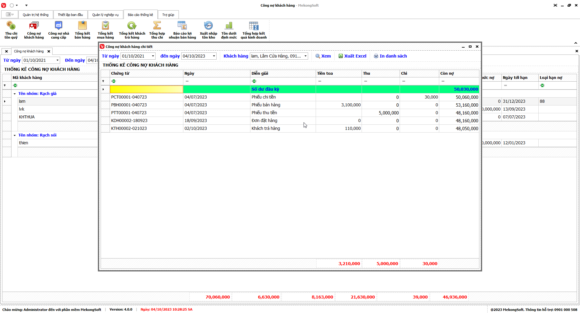 7.2. Báo cáo công nợ khách hàng