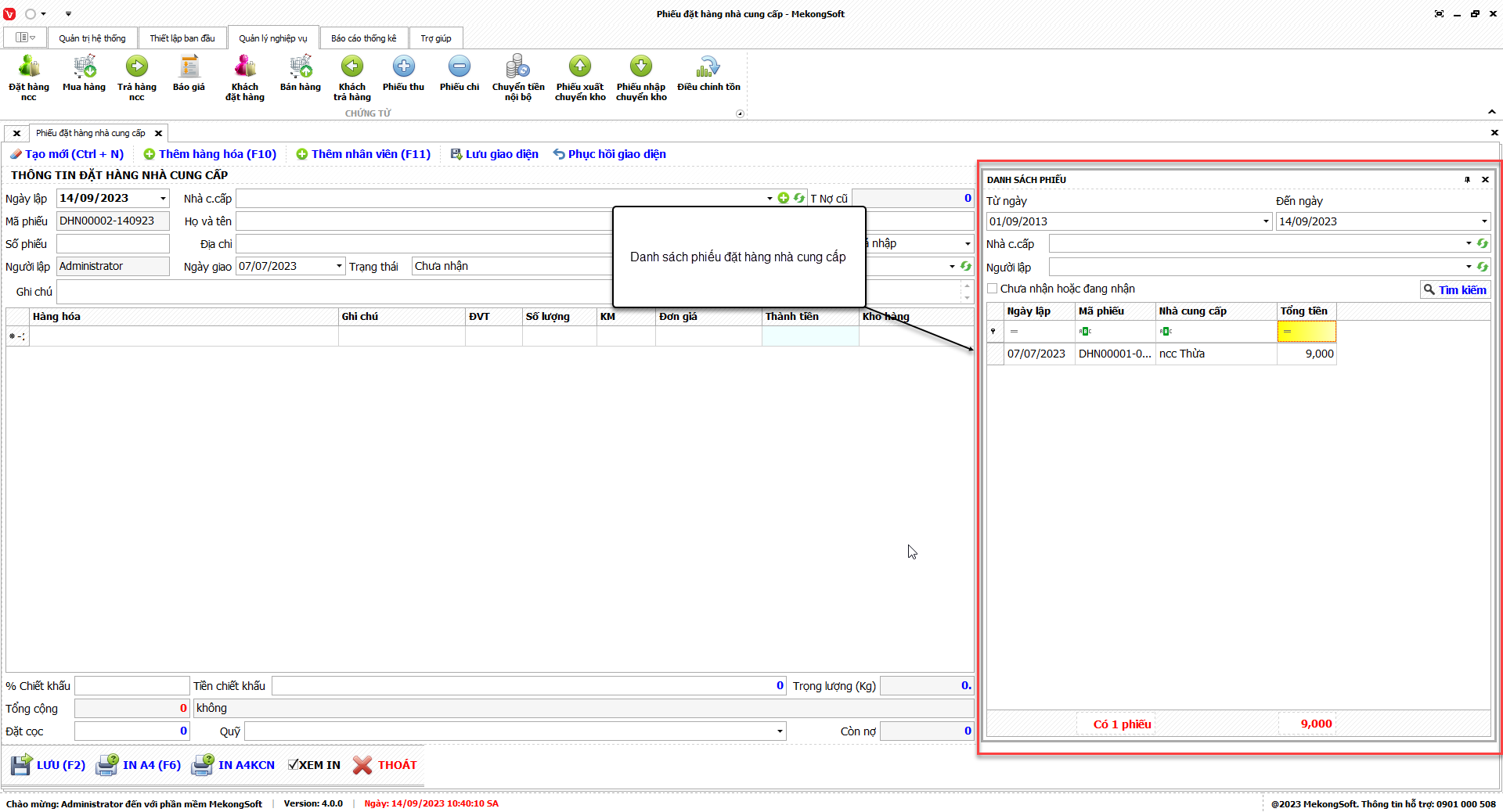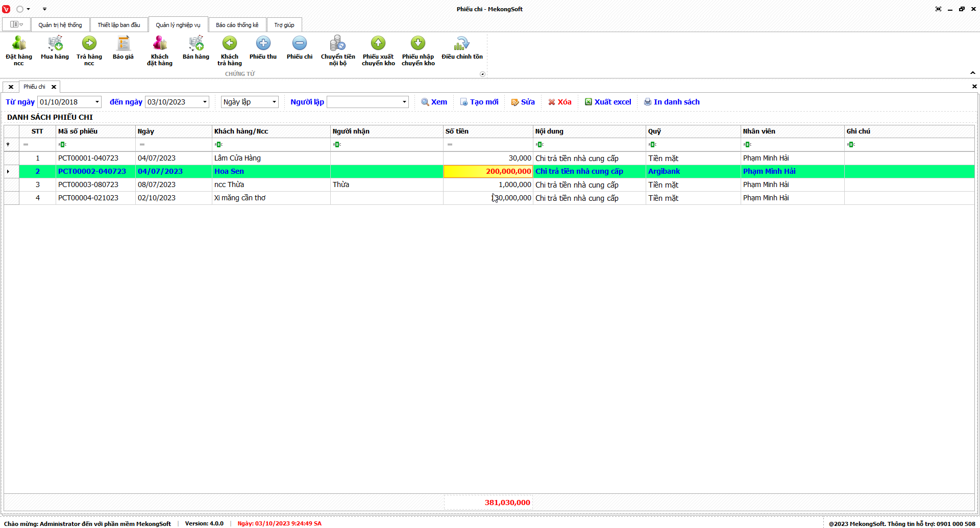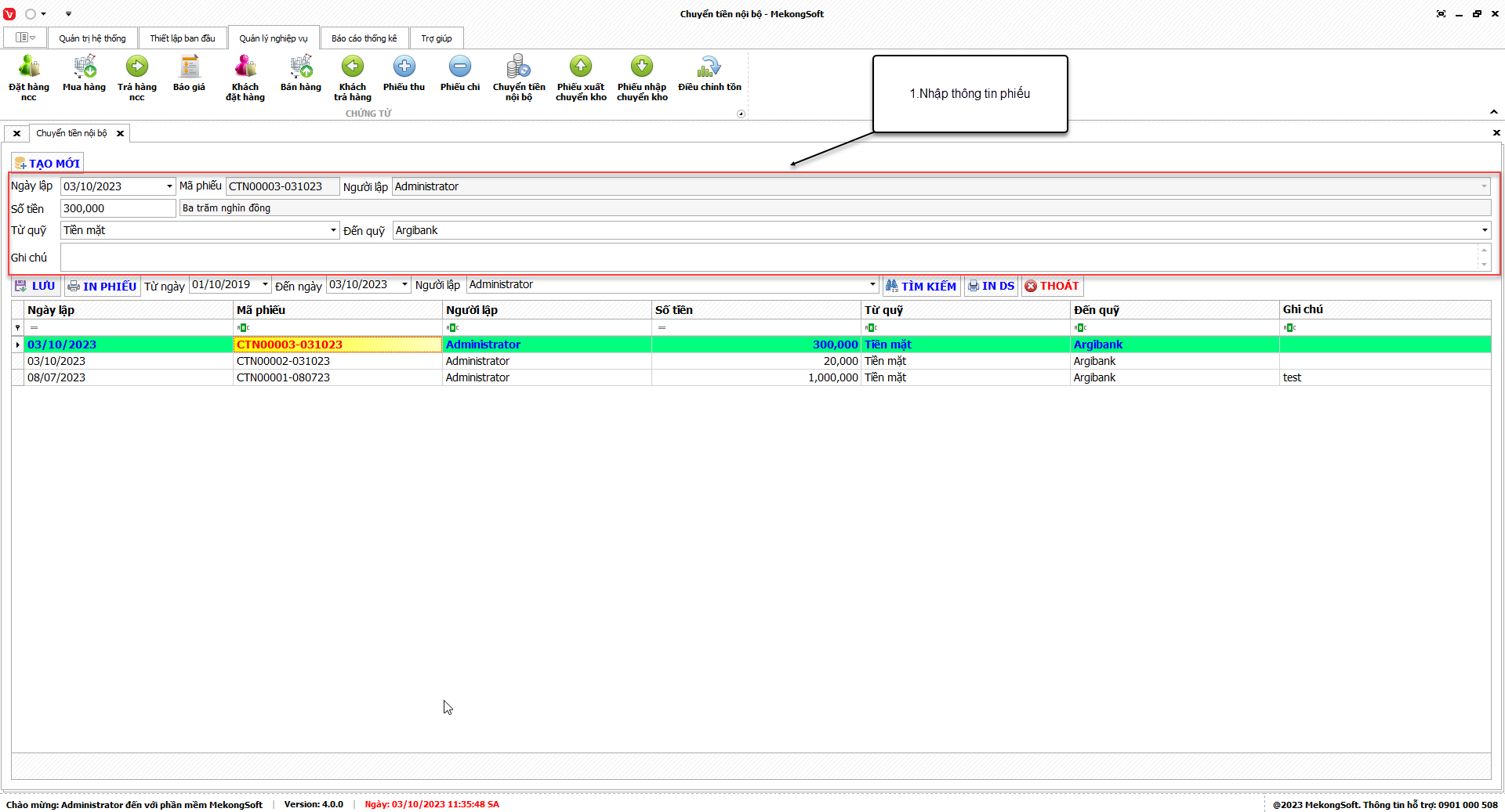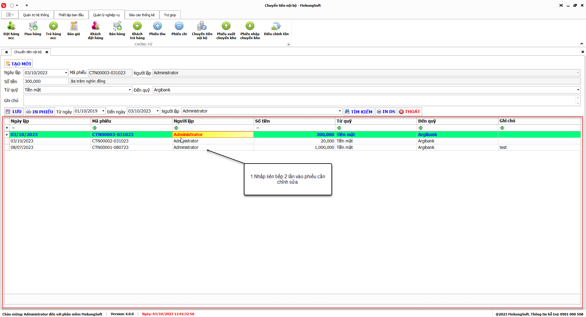 1. Đăng nhập vào phần mềm.