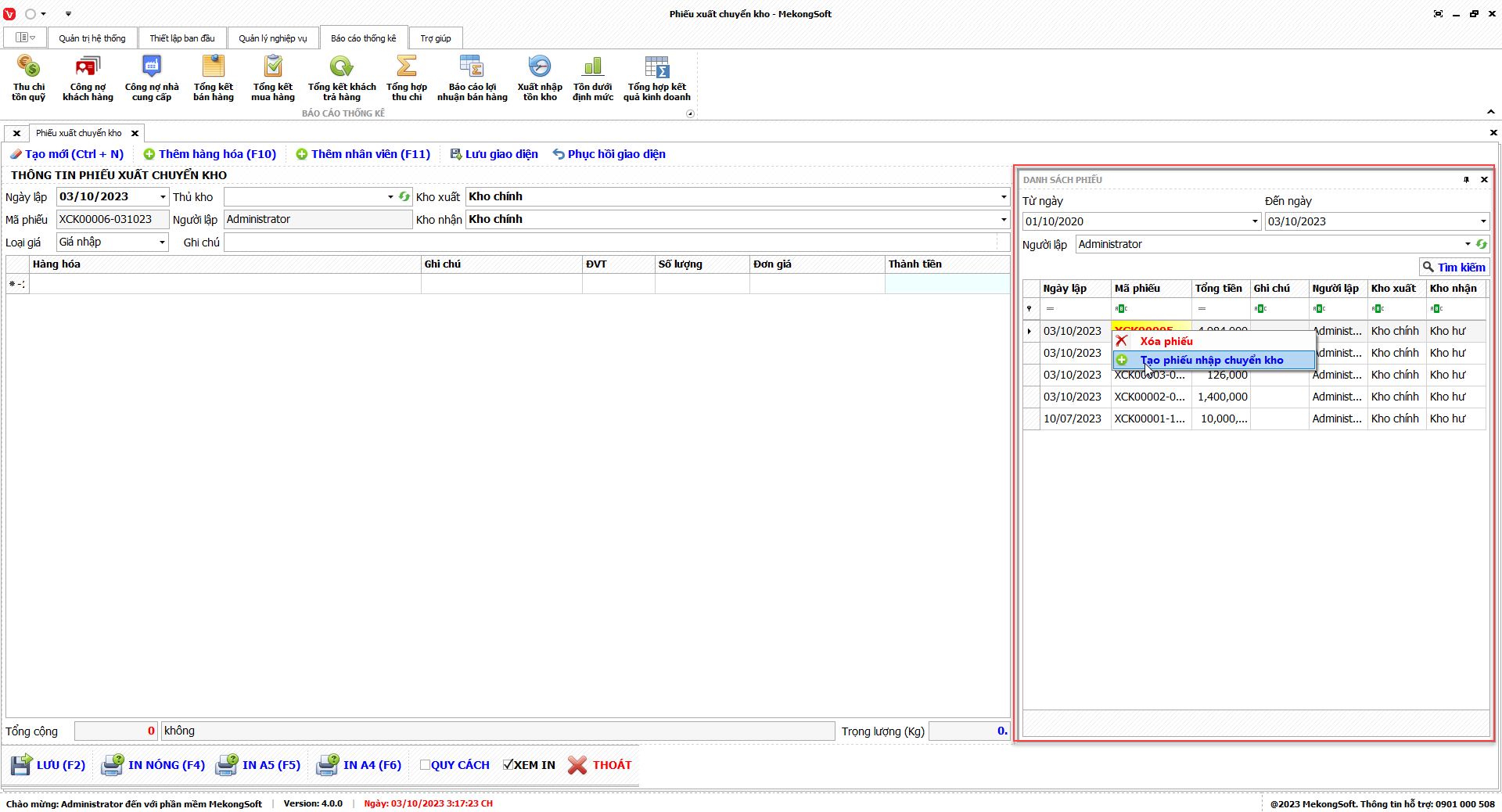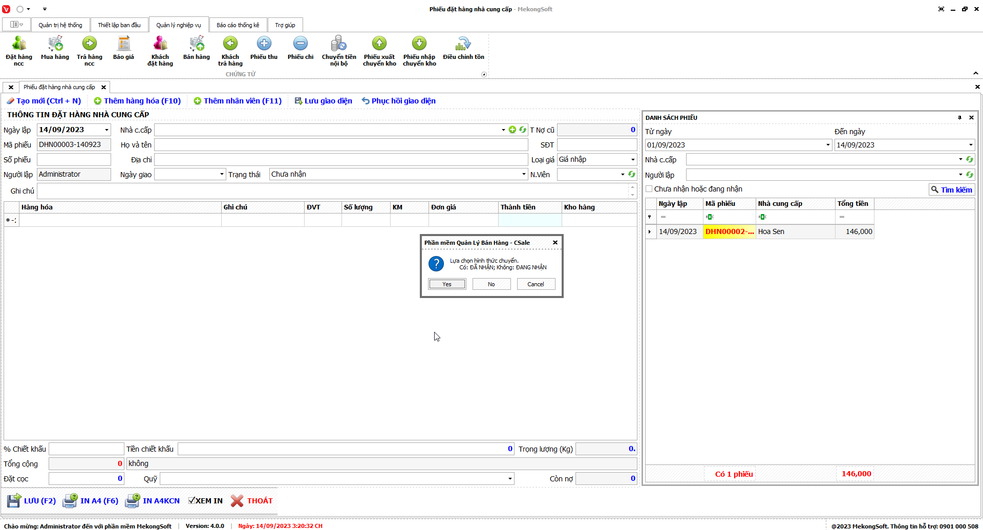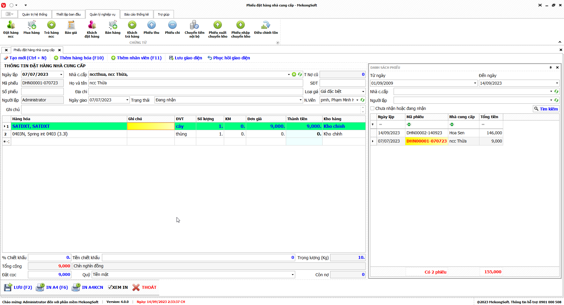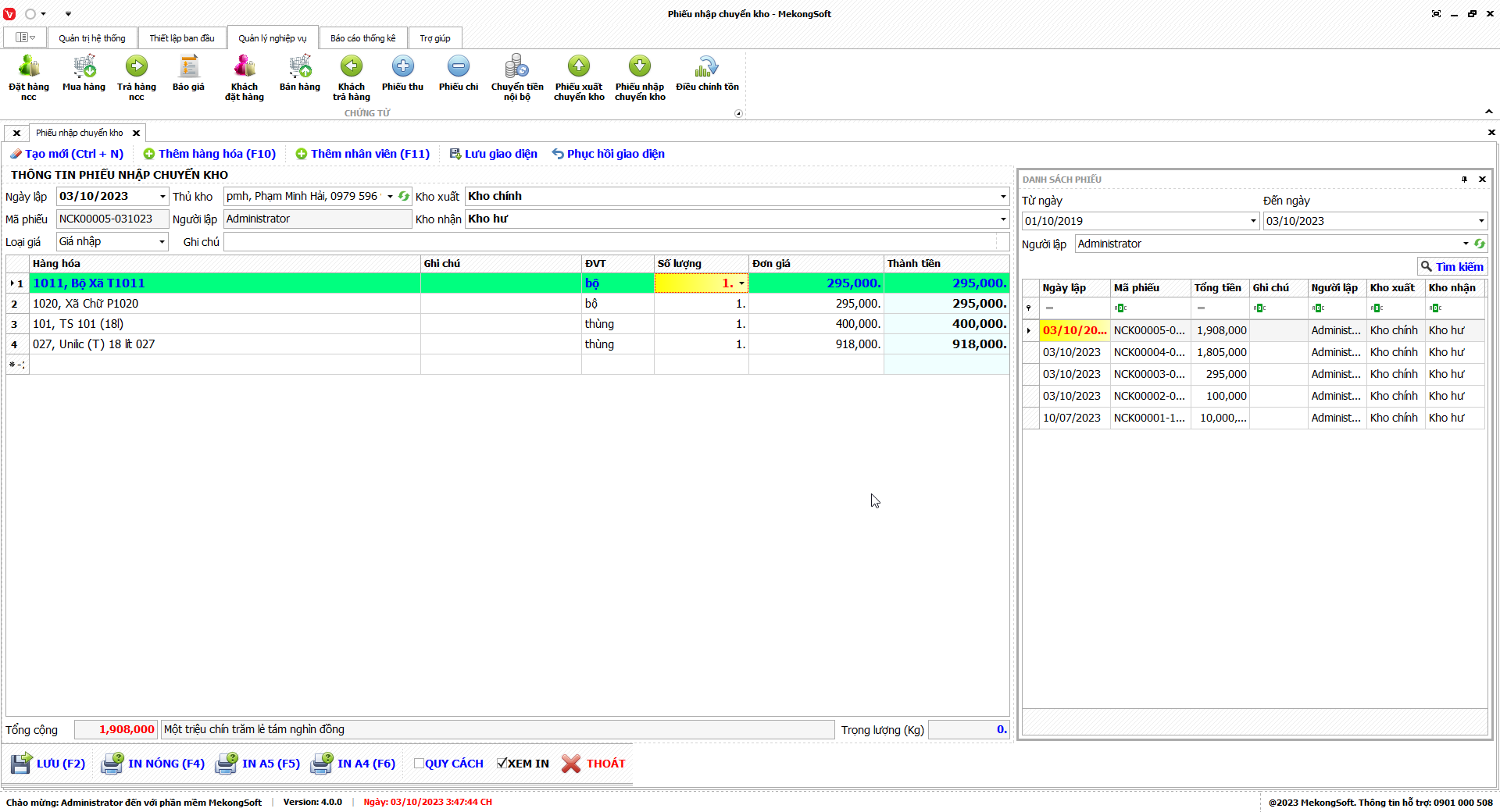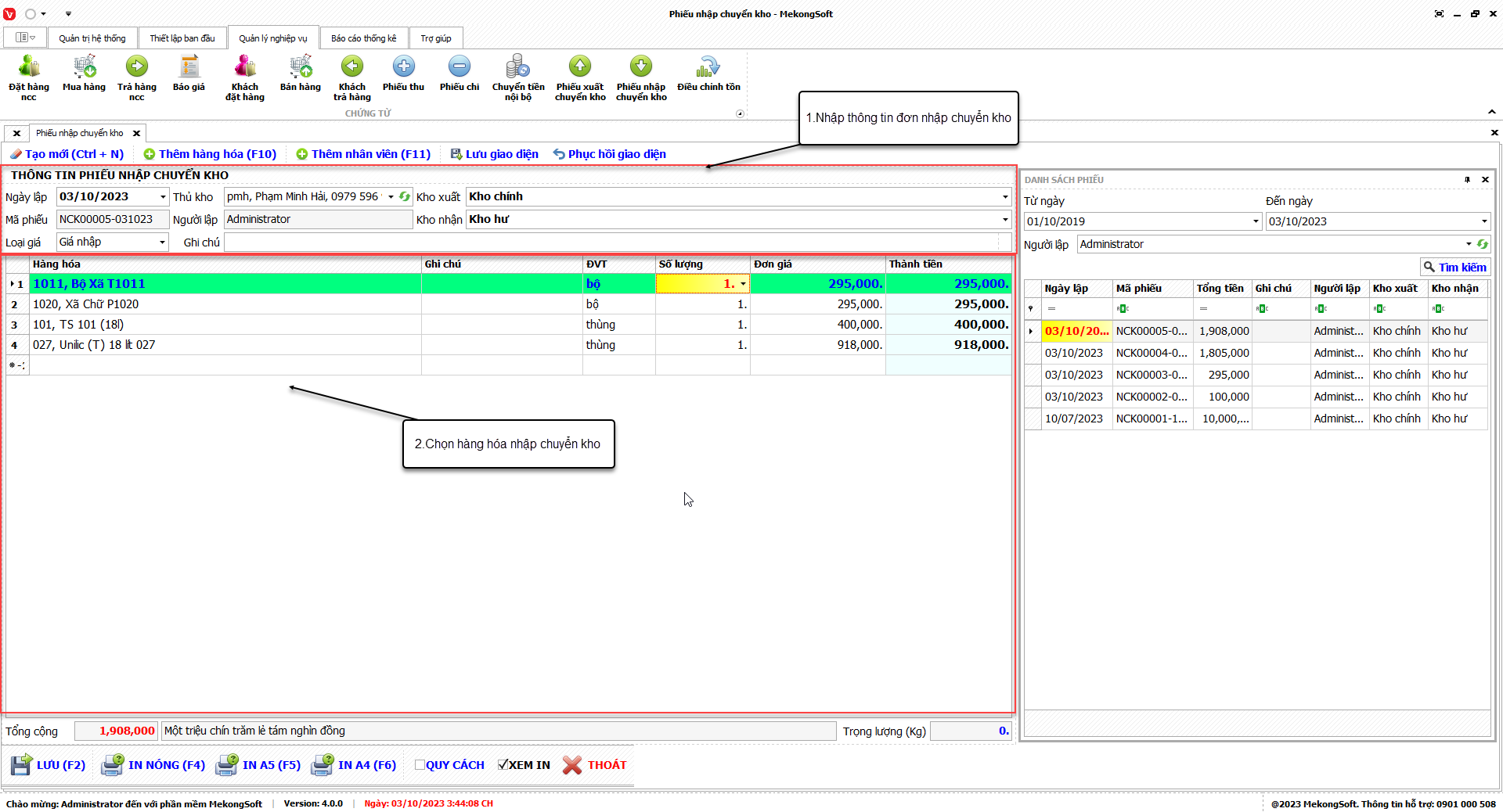 1. Đăng nhập vào phần mềm.