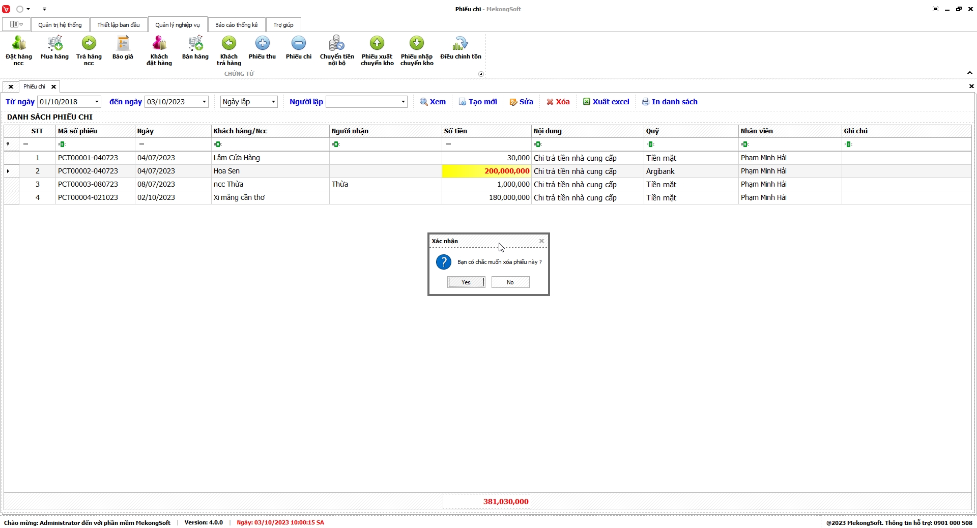 Để xóa người dùng trên phần mềm bán hàng vật liệu xây dựng, bạn có thể thực hiện theo các bước sau: