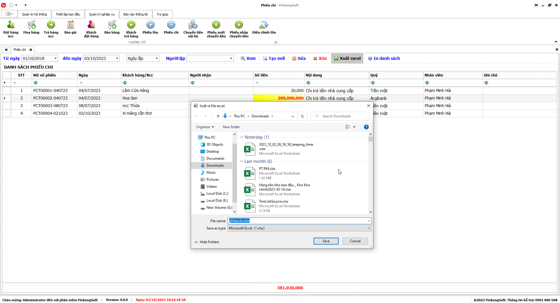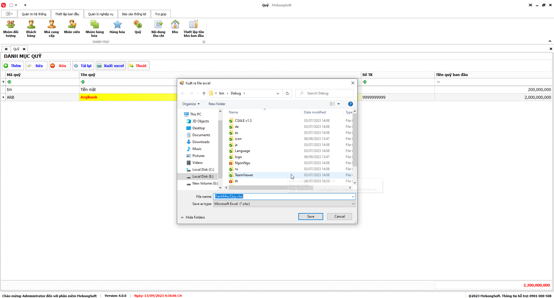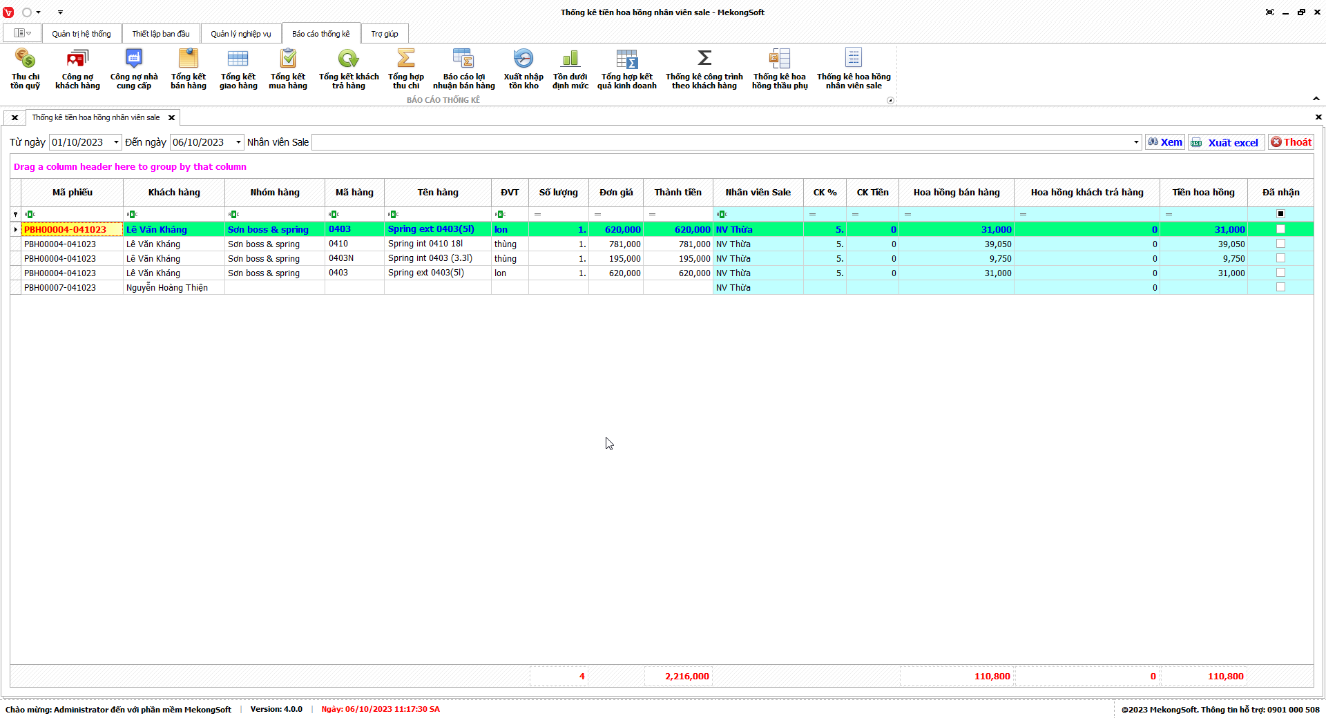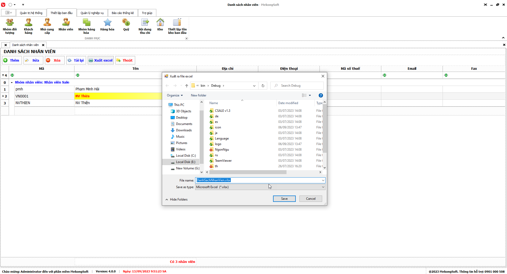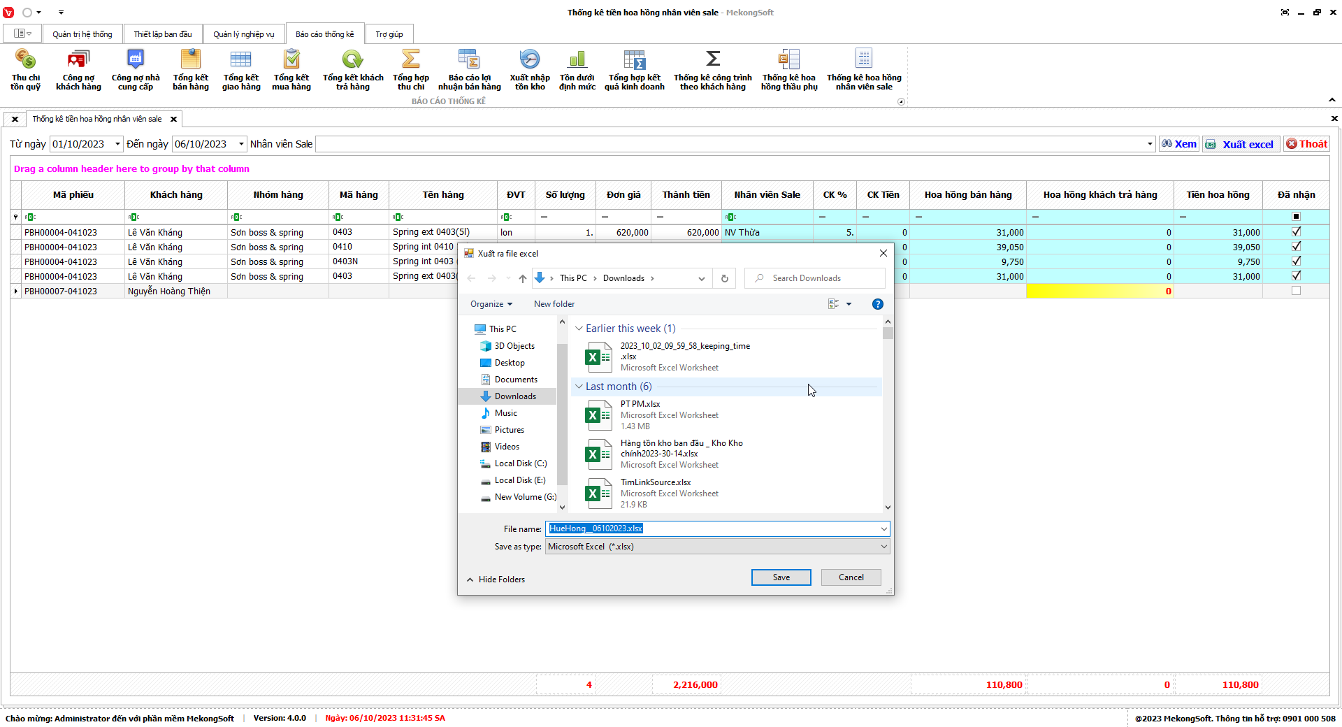 Phần mềm sẽ xuất Doanh số theo nhân viên dưới dạng file excel.