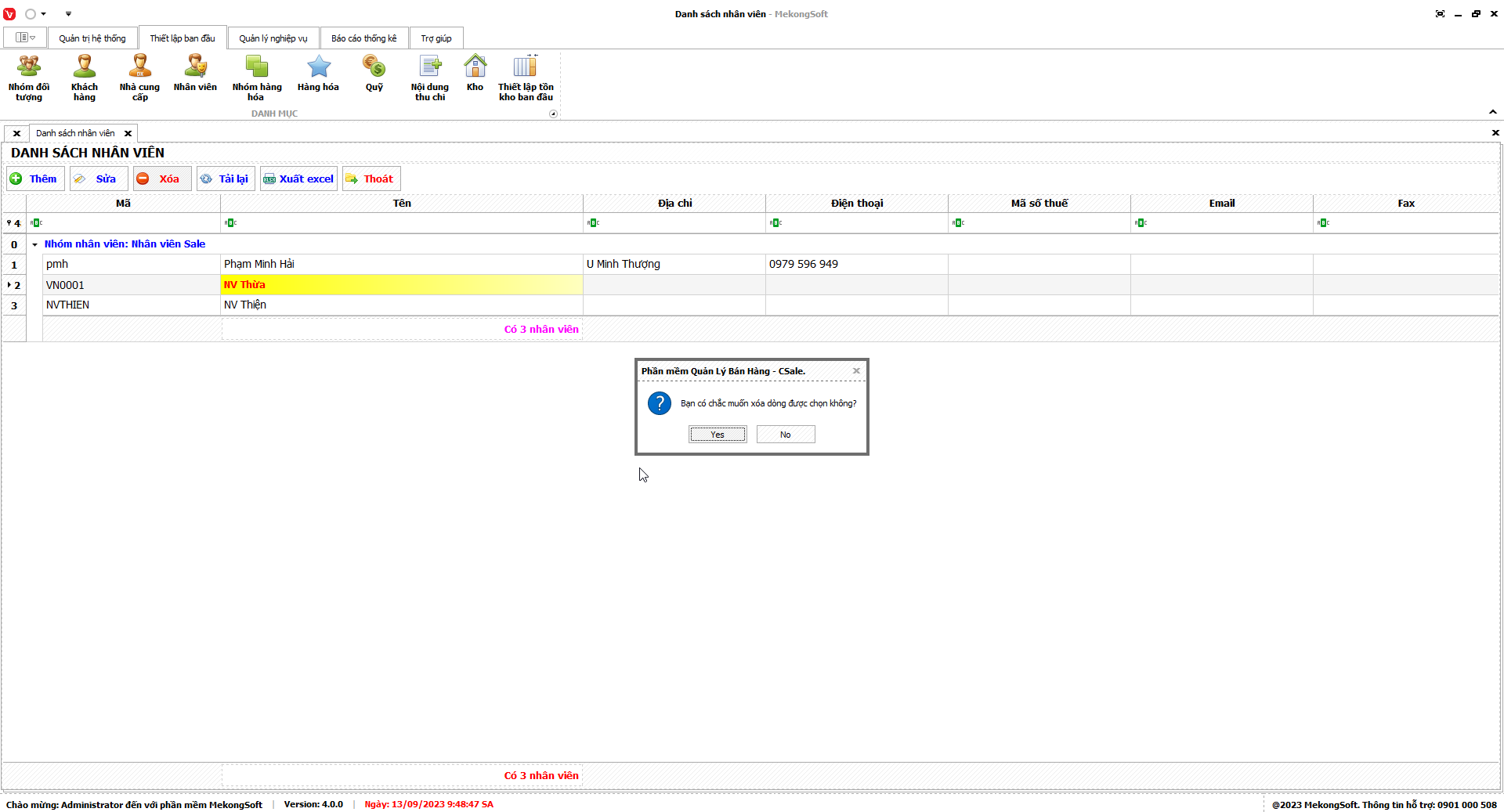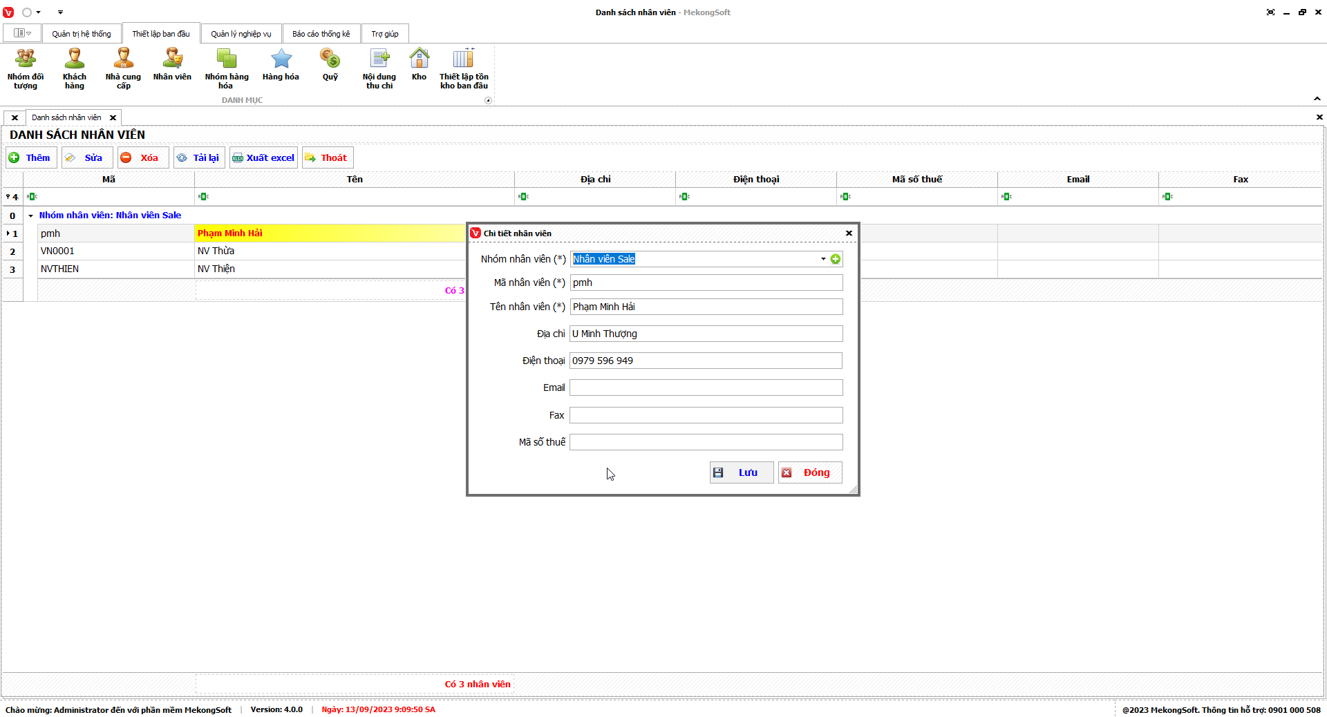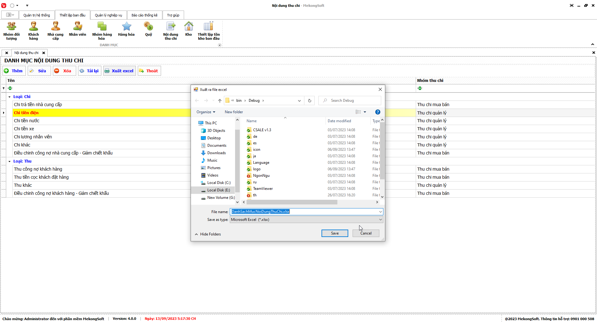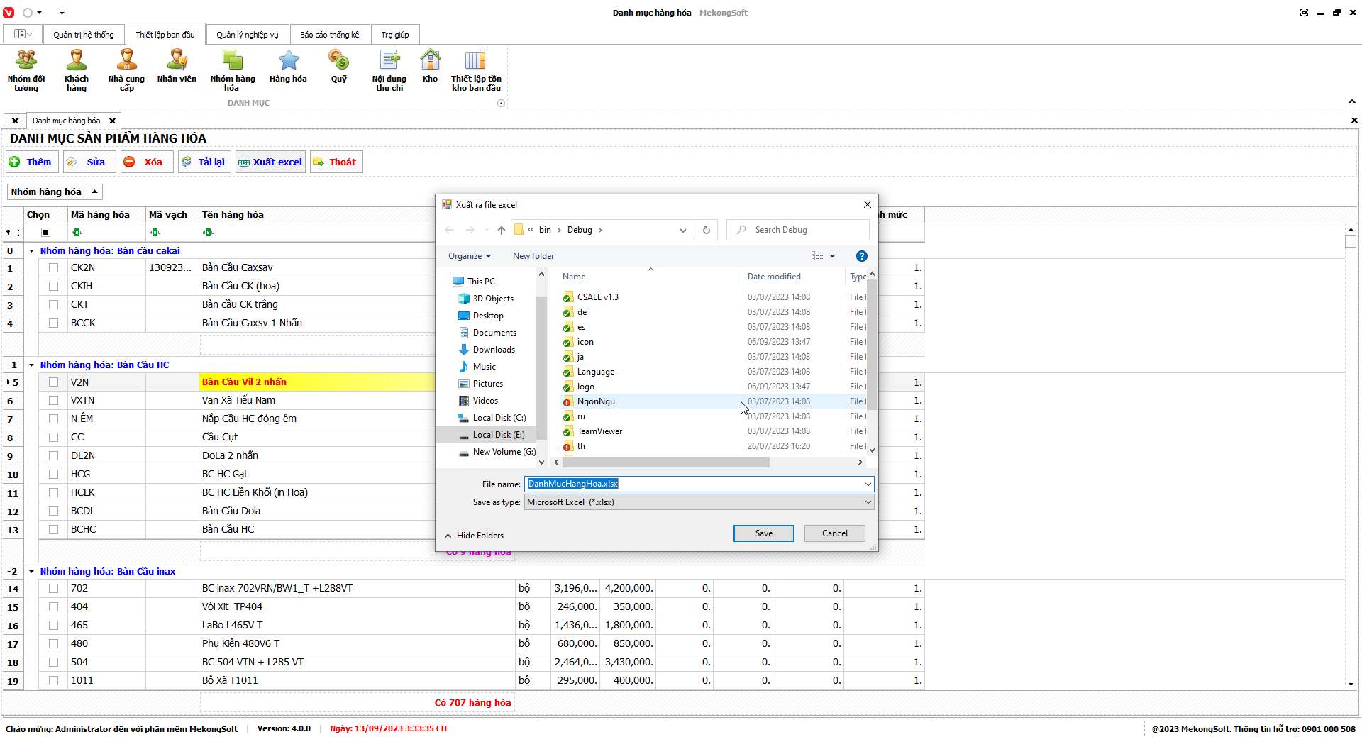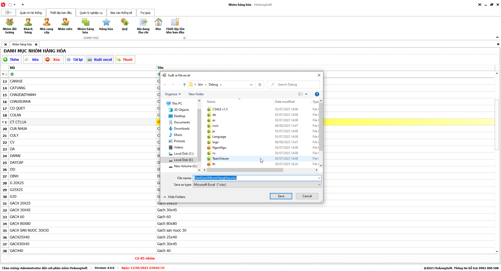 Phần mềm sẽ xuất Doanh số theo nhân viên dưới dạng file excel.