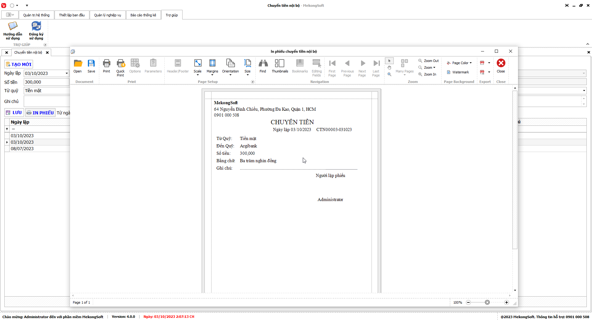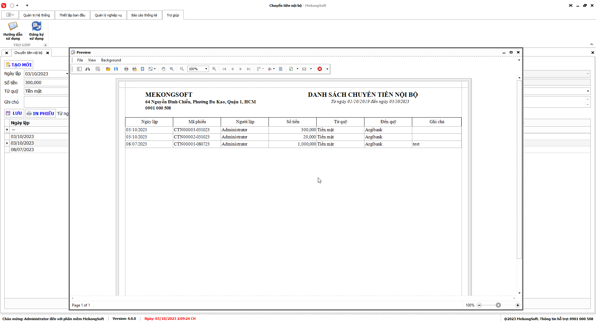 2. Nhấp vàoPrint để in Doanh thu theo chi nhánh