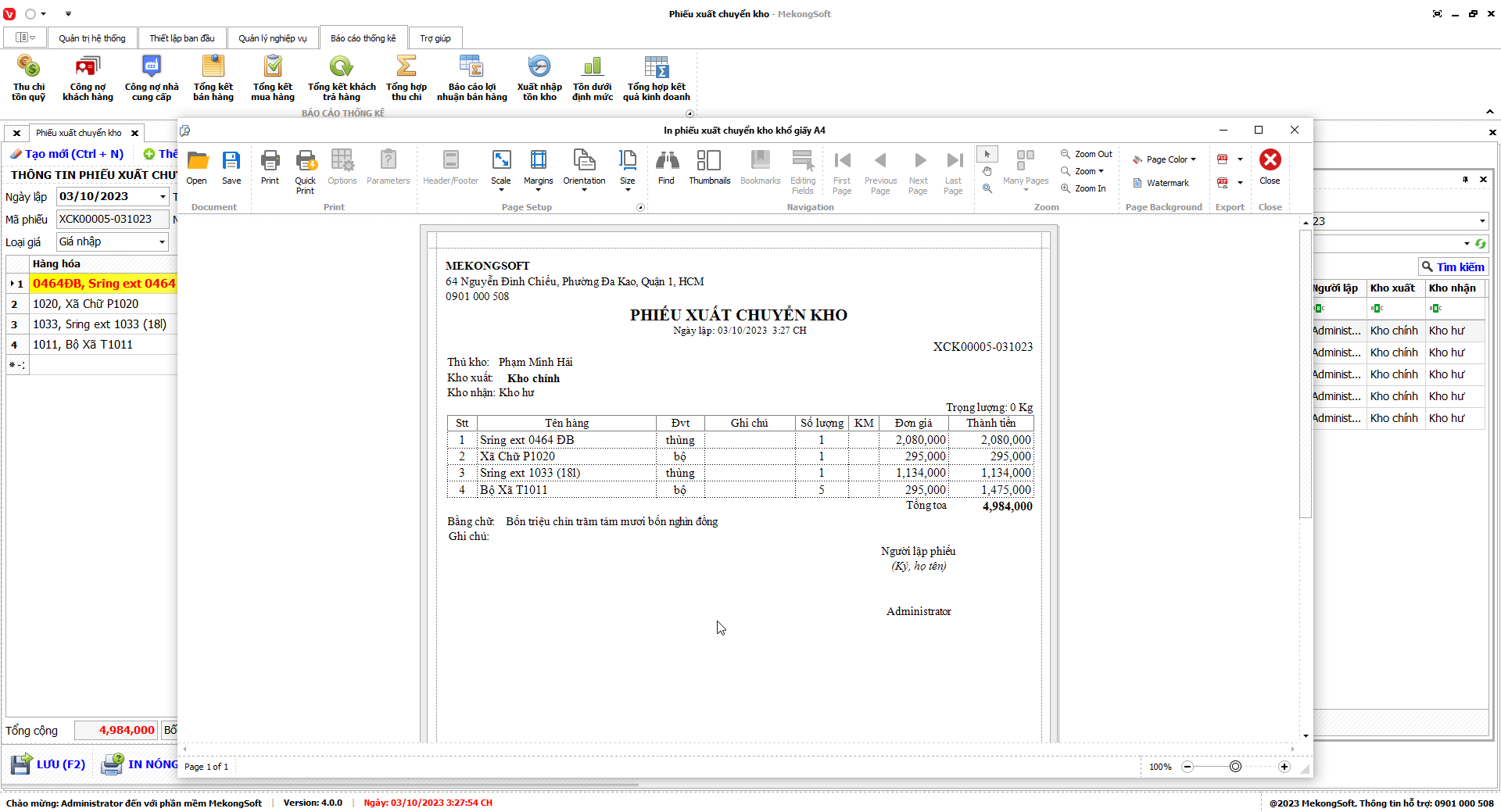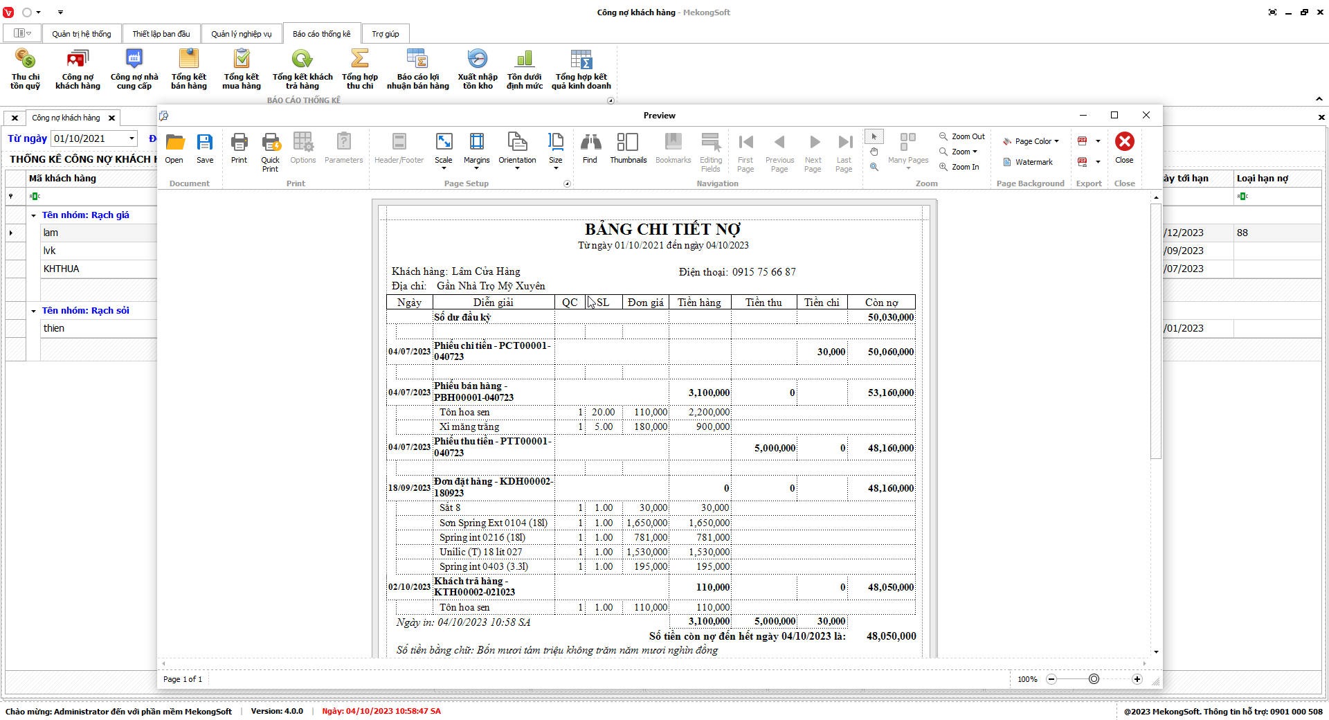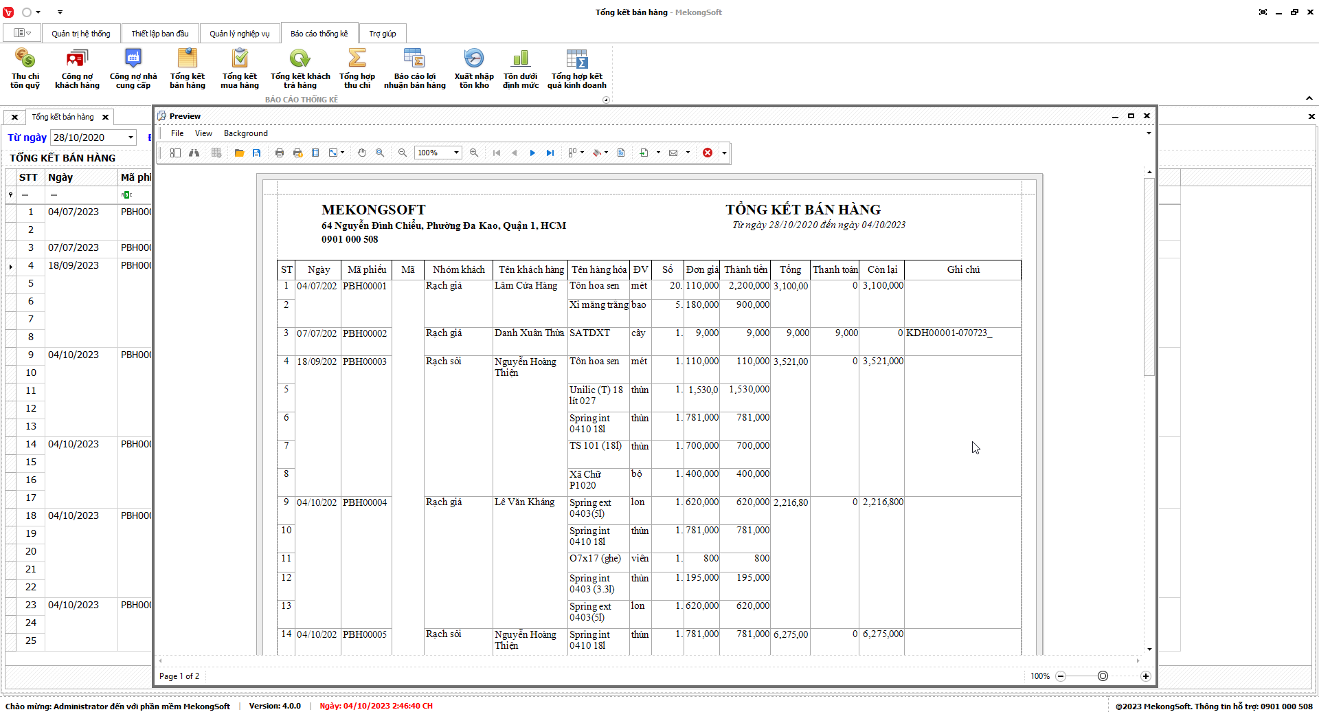 Để in báo cáo tổng hợp kết quả kinh doanh trên phần mềm bán hàng vật liệu xây dựng, bạn có thể thực hiện theo các bước sau: