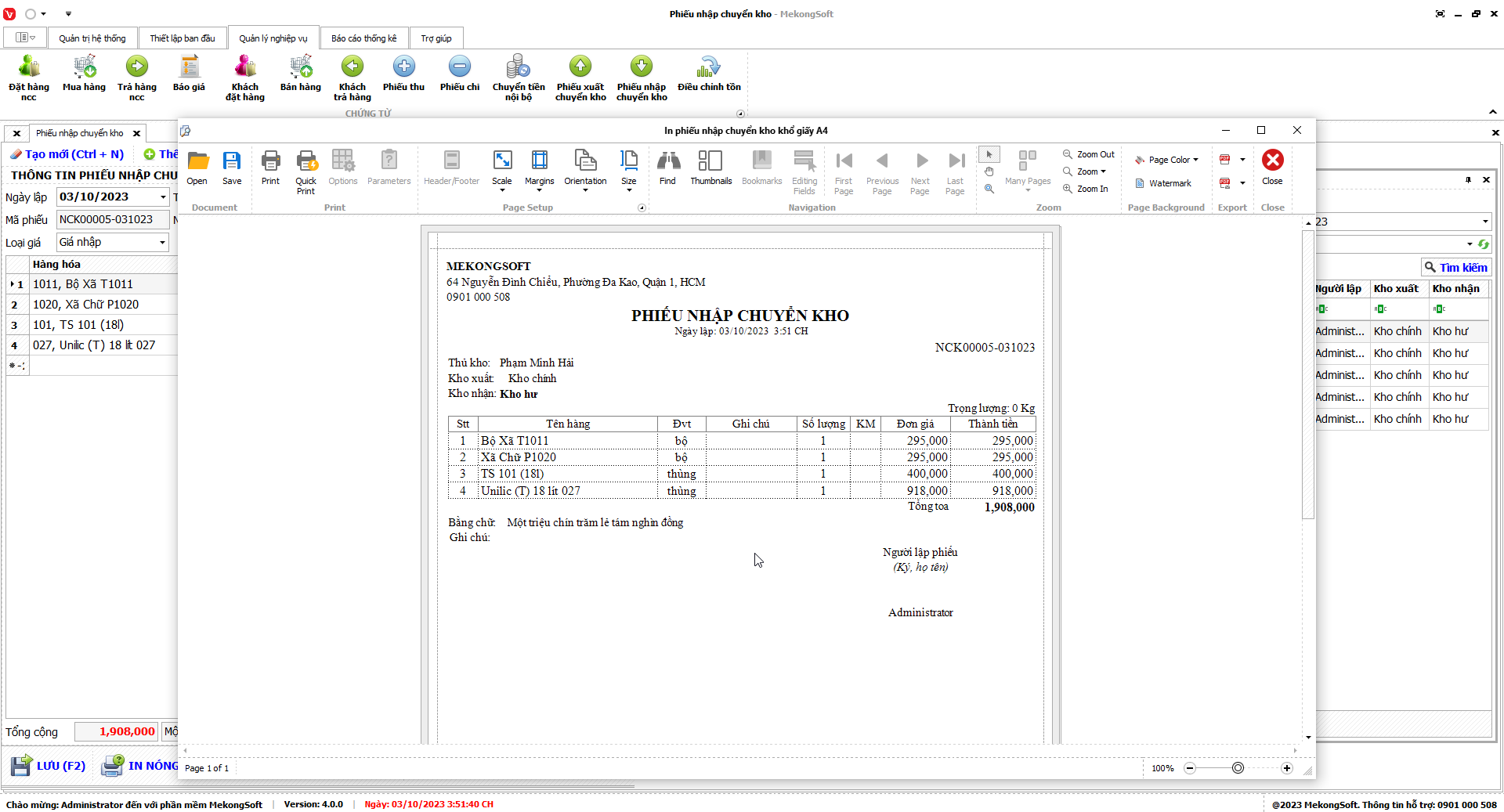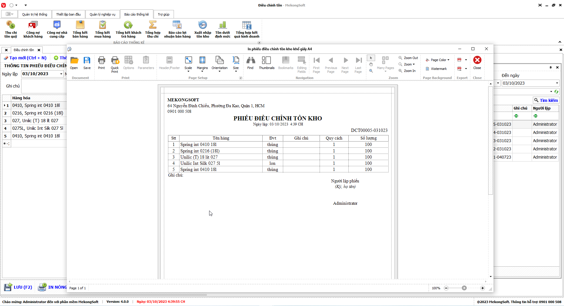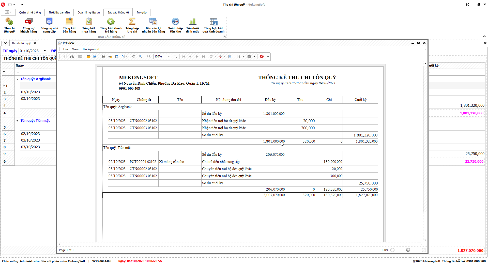 Để in báo cáo tổng hợp kết quả kinh doanh trên phần mềm bán hàng vật liệu xây dựng, bạn có thể thực hiện theo các bước sau: