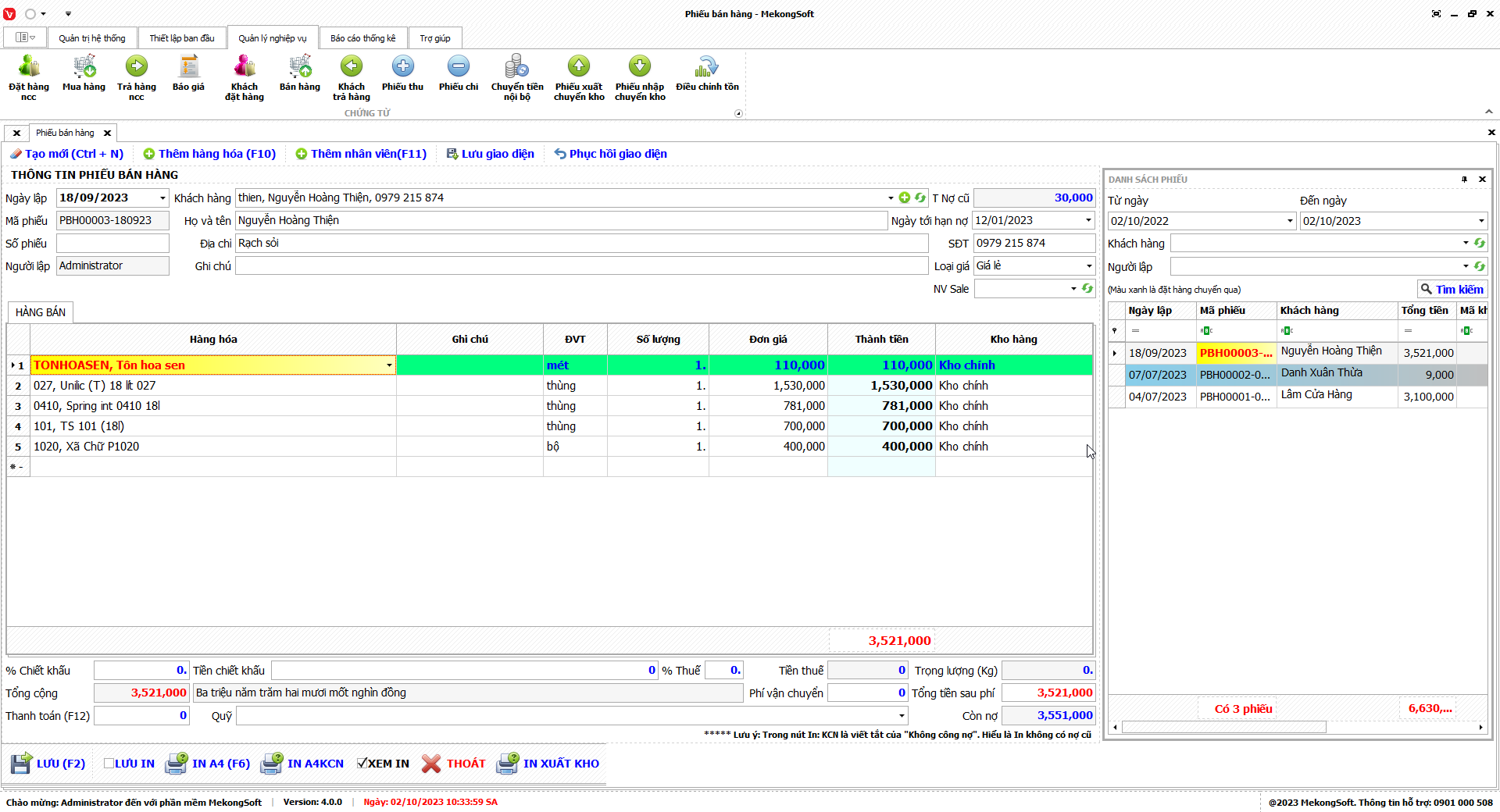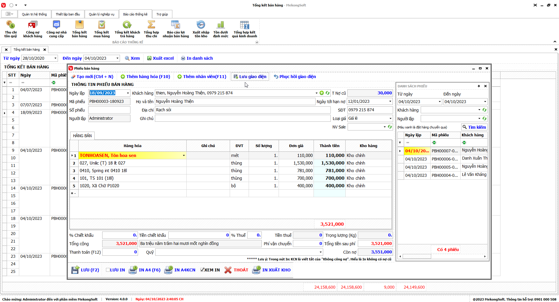 In doanh số theo nhân viên