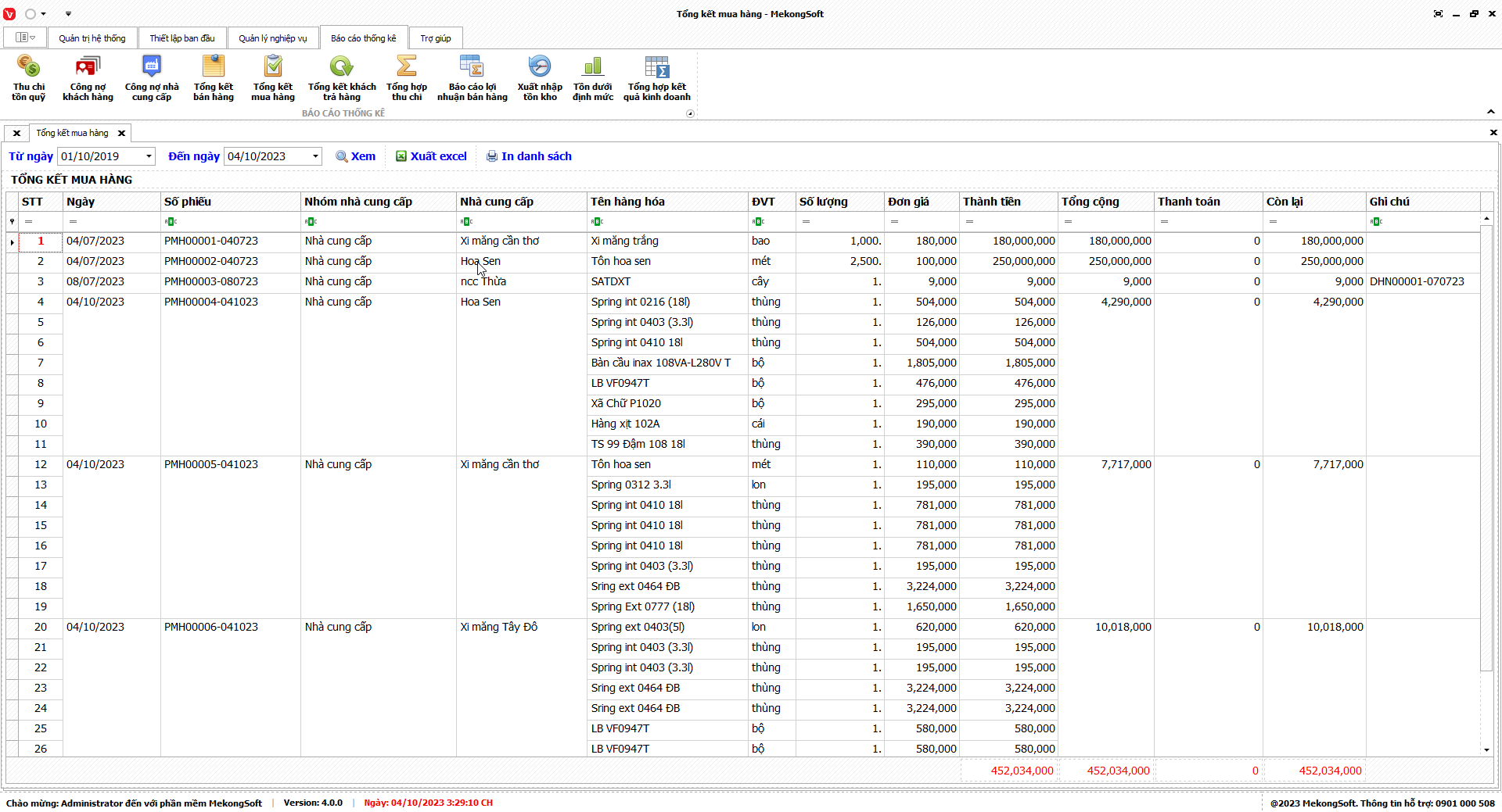Để xuất excel tổng hợp kết quả kinh doanh trên phần mềm bán hàng vật liệu xây dựng, bạn có thể thực hiện theo các bước sau: