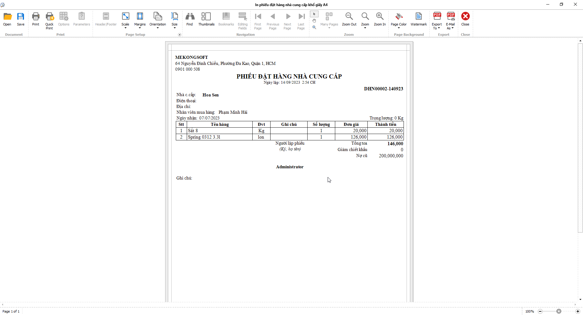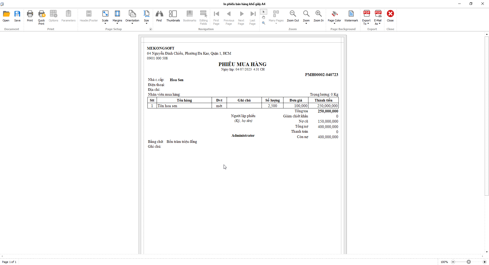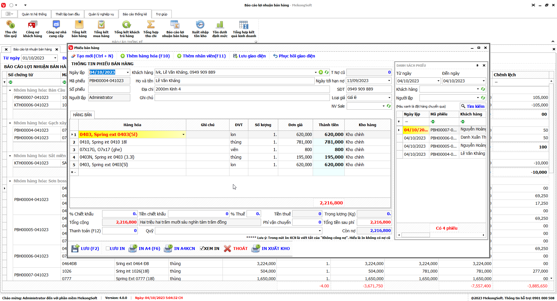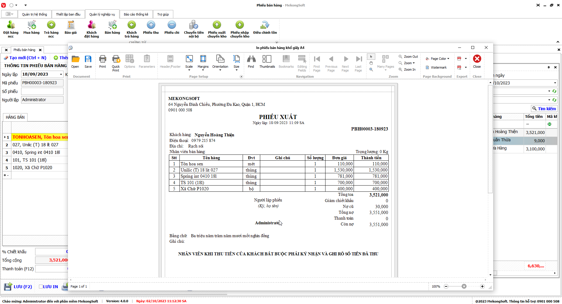 In báo cáo bán hàng
