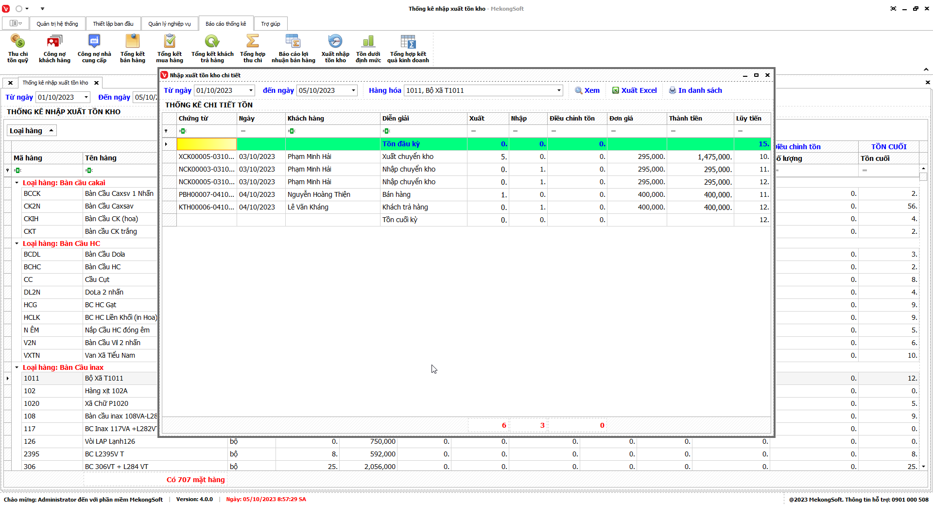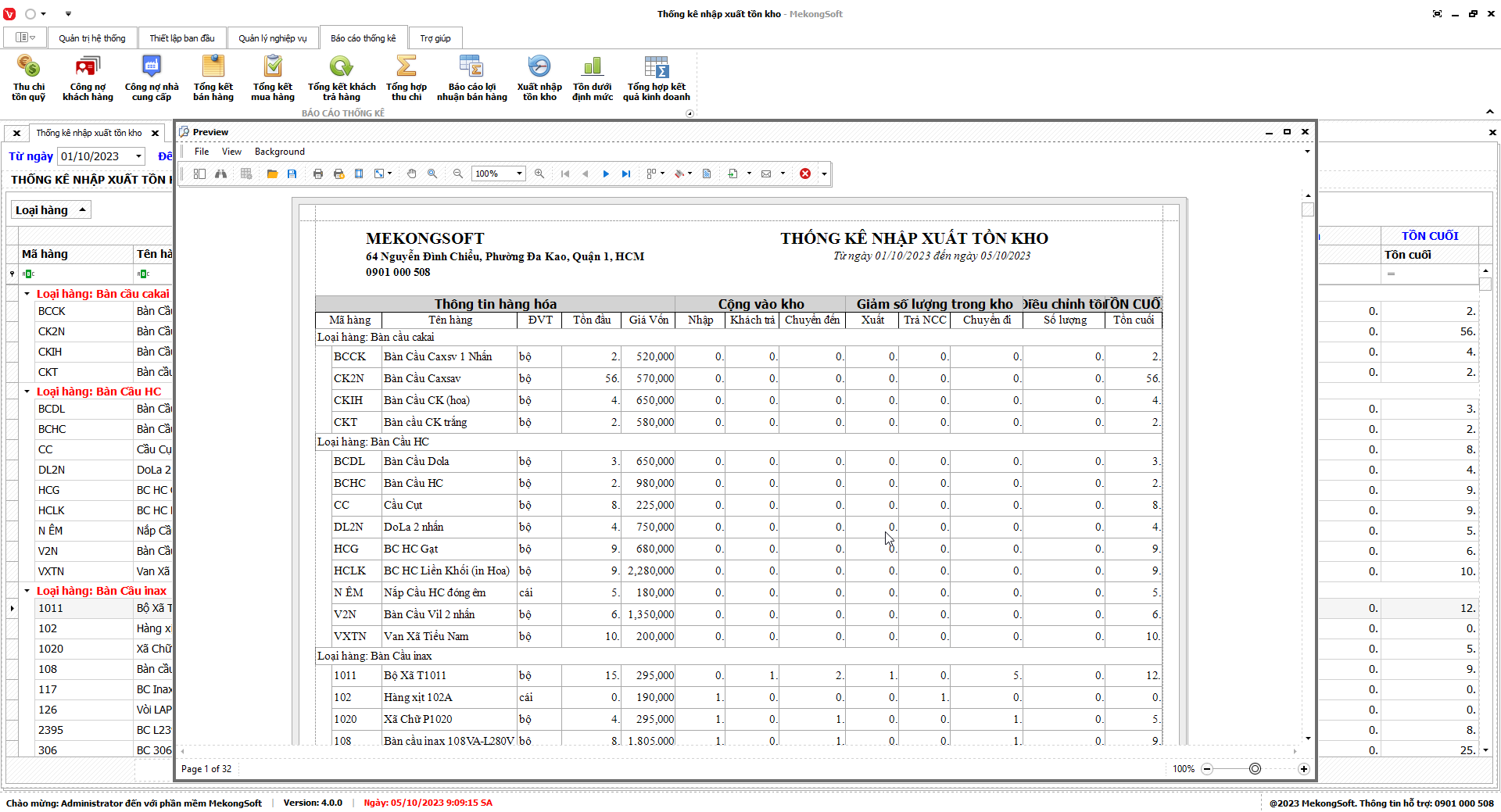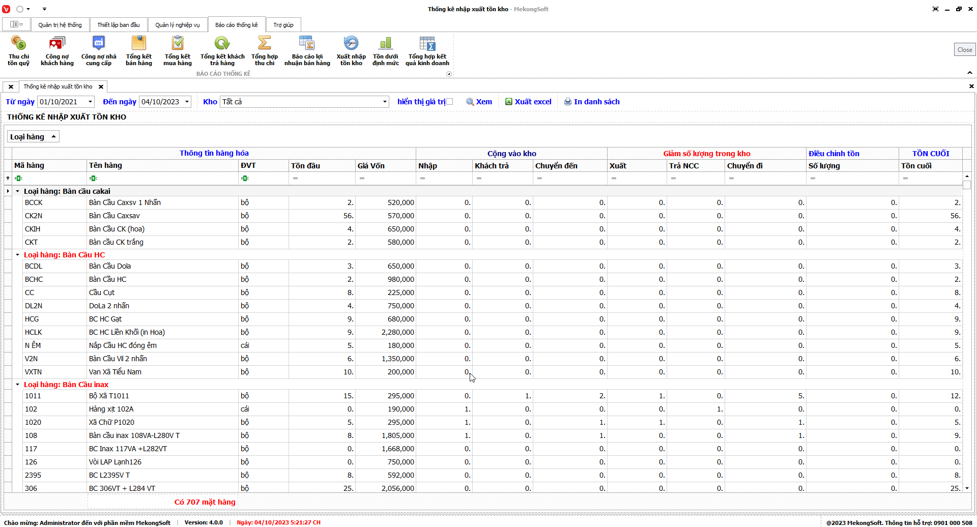 7.9. Thống kê xuất nhập tồn kho