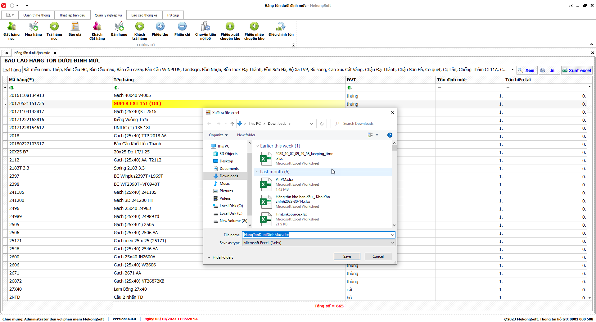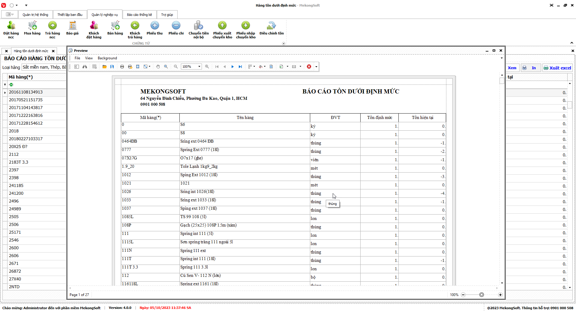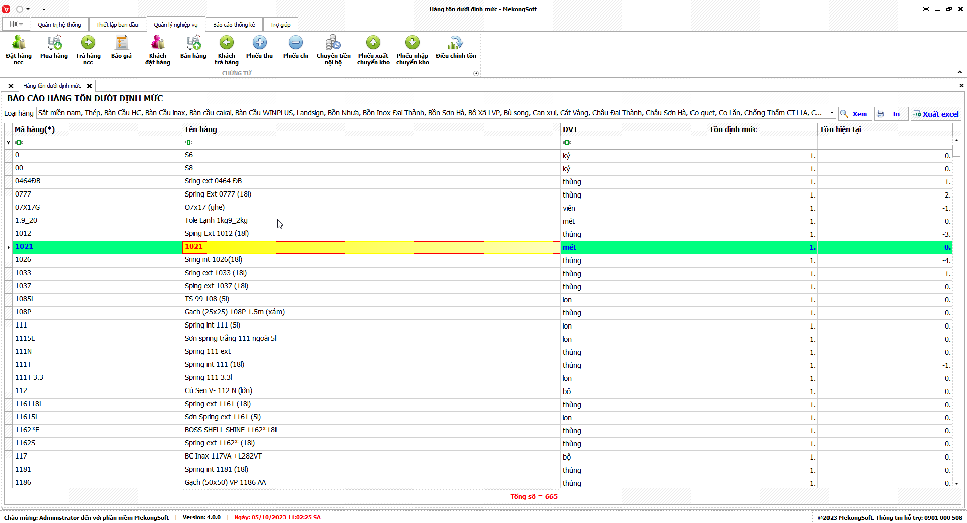 7.10. Thống kê tồn dưới định mức
