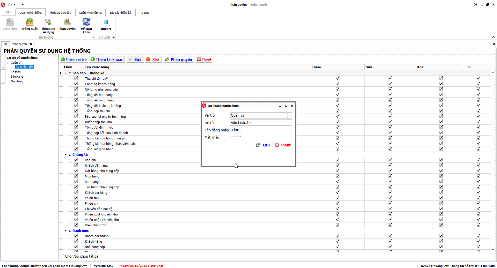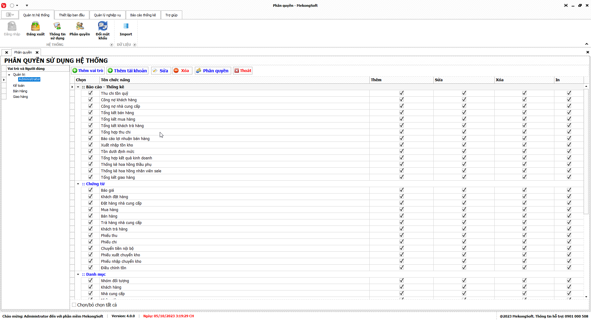 Chức năng phân quyền trên phần mềm quản lý bán hàng vật liệu xây dựng là một chức năng quan trọng, giúp nhà quản lý phân chia quyền hạn cho từng nhân viên, từ đó đảm bảo hoạt động kinh doanh được diễn ra suôn sẻ và hiệu quả.