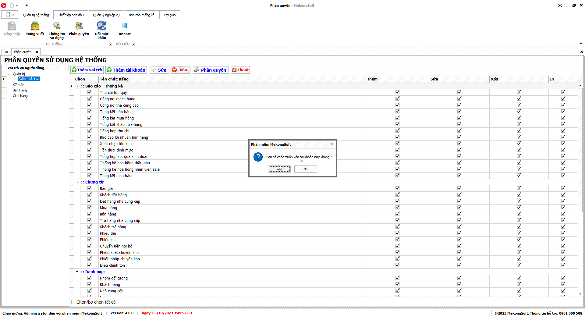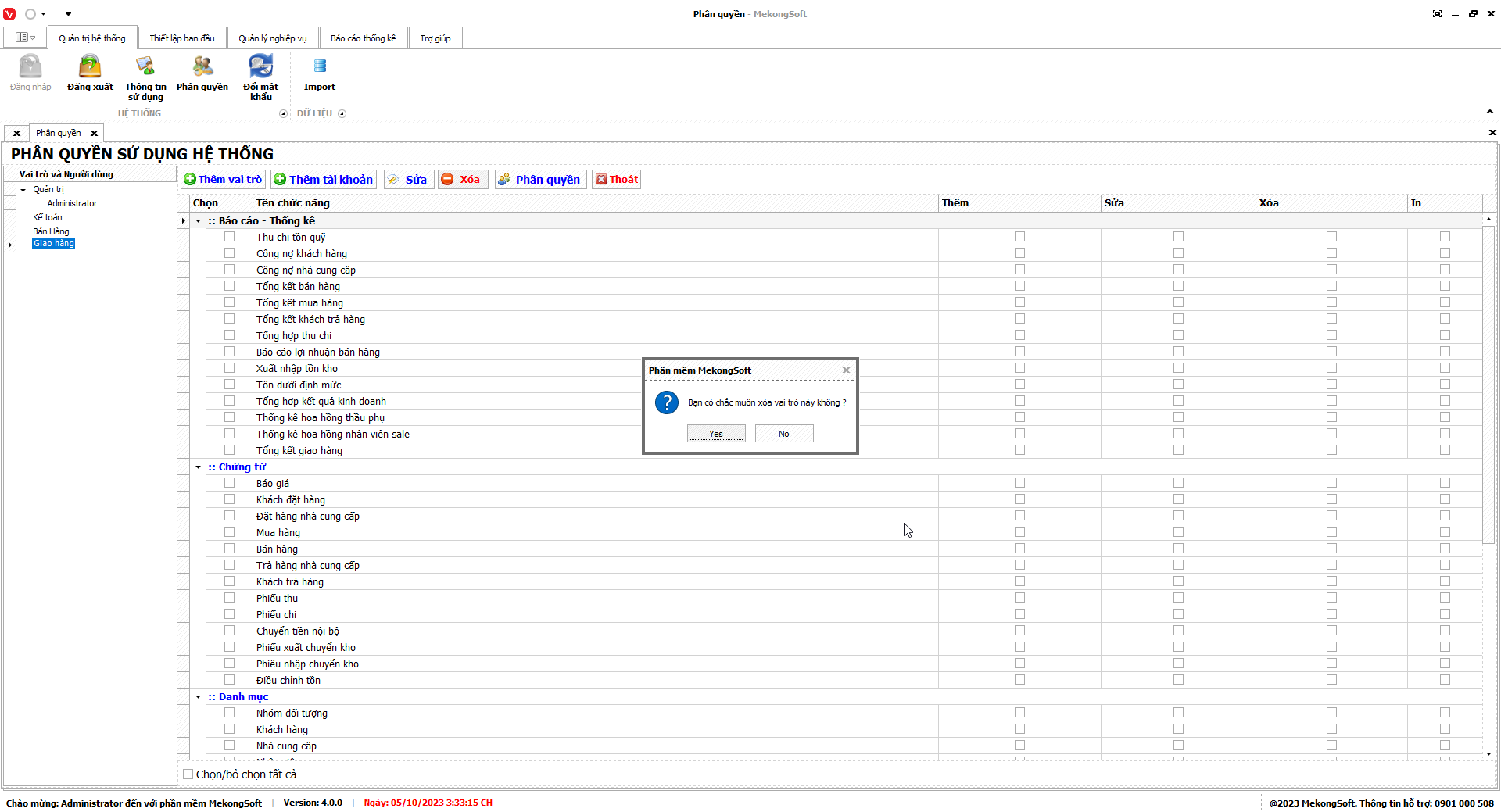 - Chỉ xóa các nhóm quyền không còn sử dụng.