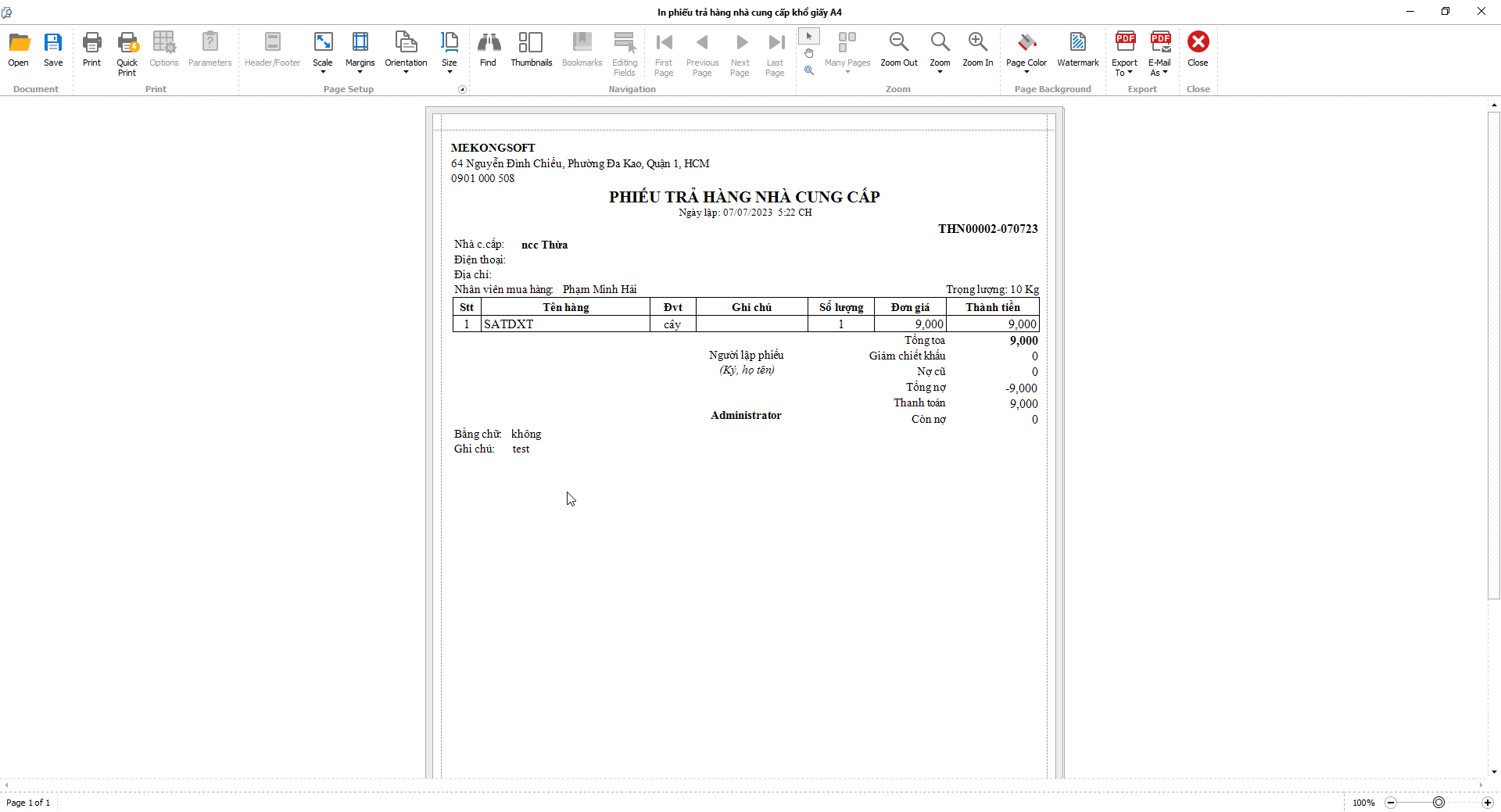 2. Nhấp vàoPrint để in Báo cáo bán hàng